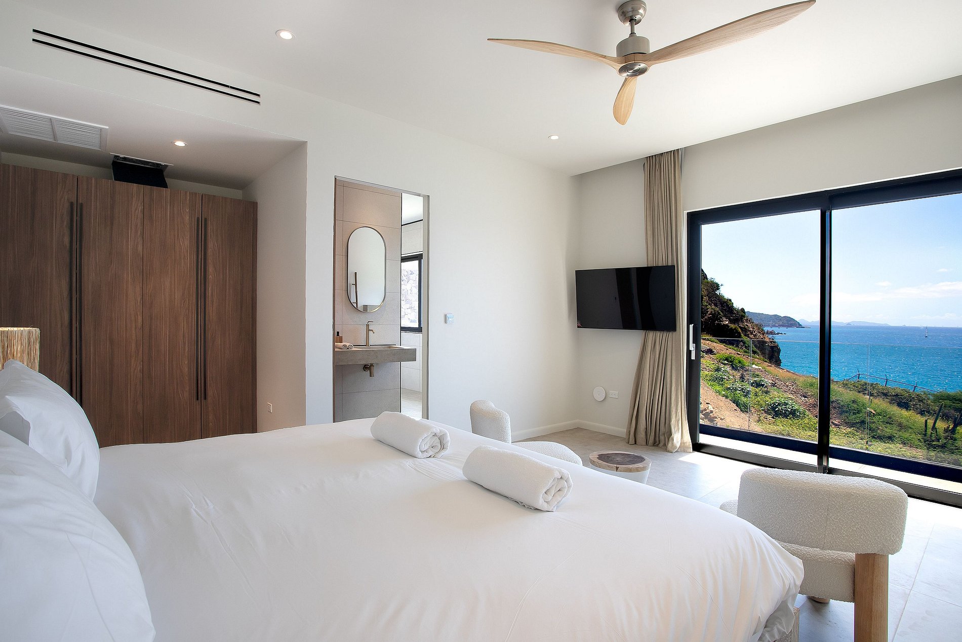 Esta nueva villa de seis habitaciones en Indigo Bay combina una arquitectura contemporánea con el lujo refinado del Caribe, ofreciendo vistas panorámicas al mar y a la isla de Saba. Su diseño abierto y los ventanales de piso a techo crean un ambiente luminoso y amplio que conecta a la perfección los espacios interiores y exteriores.
