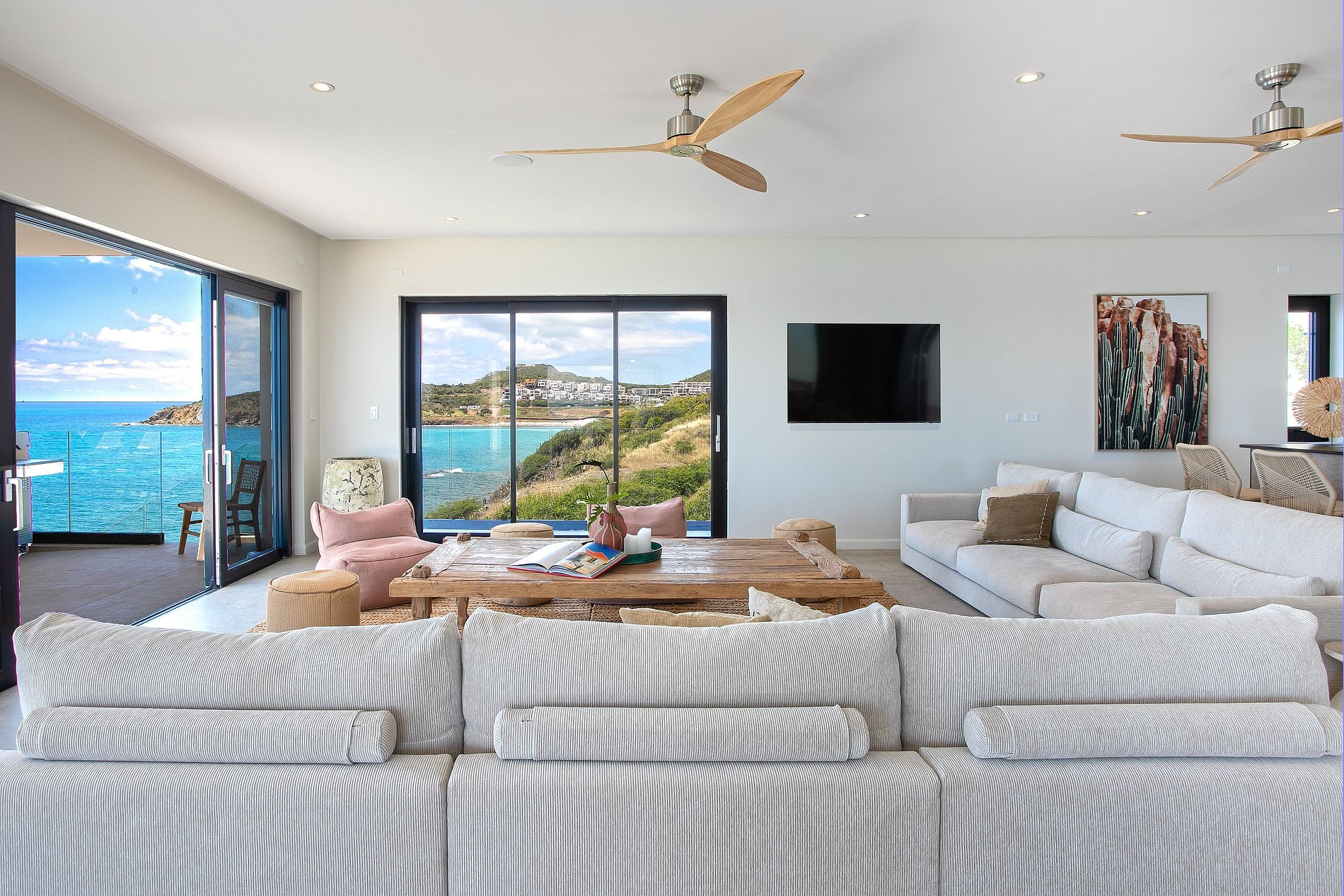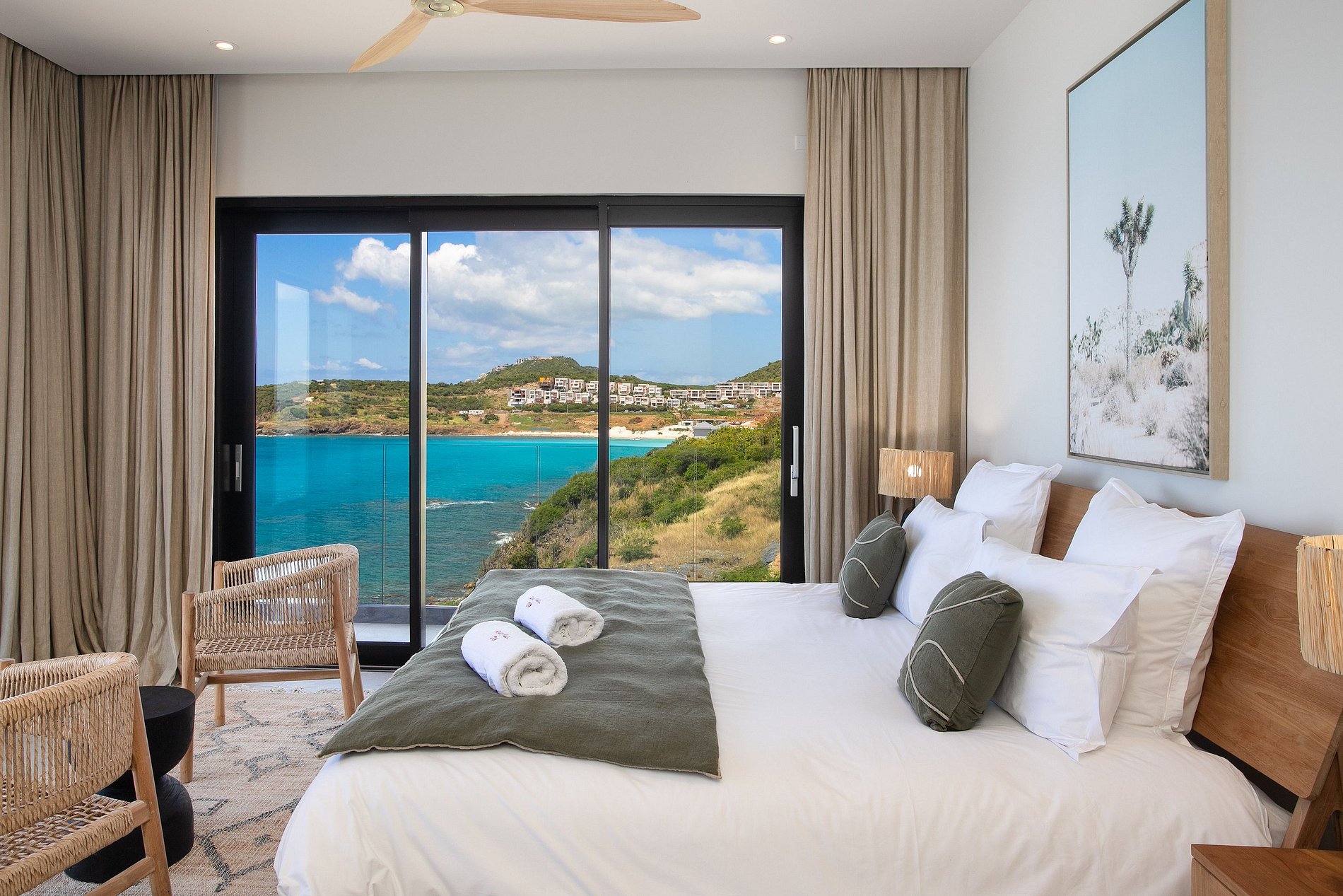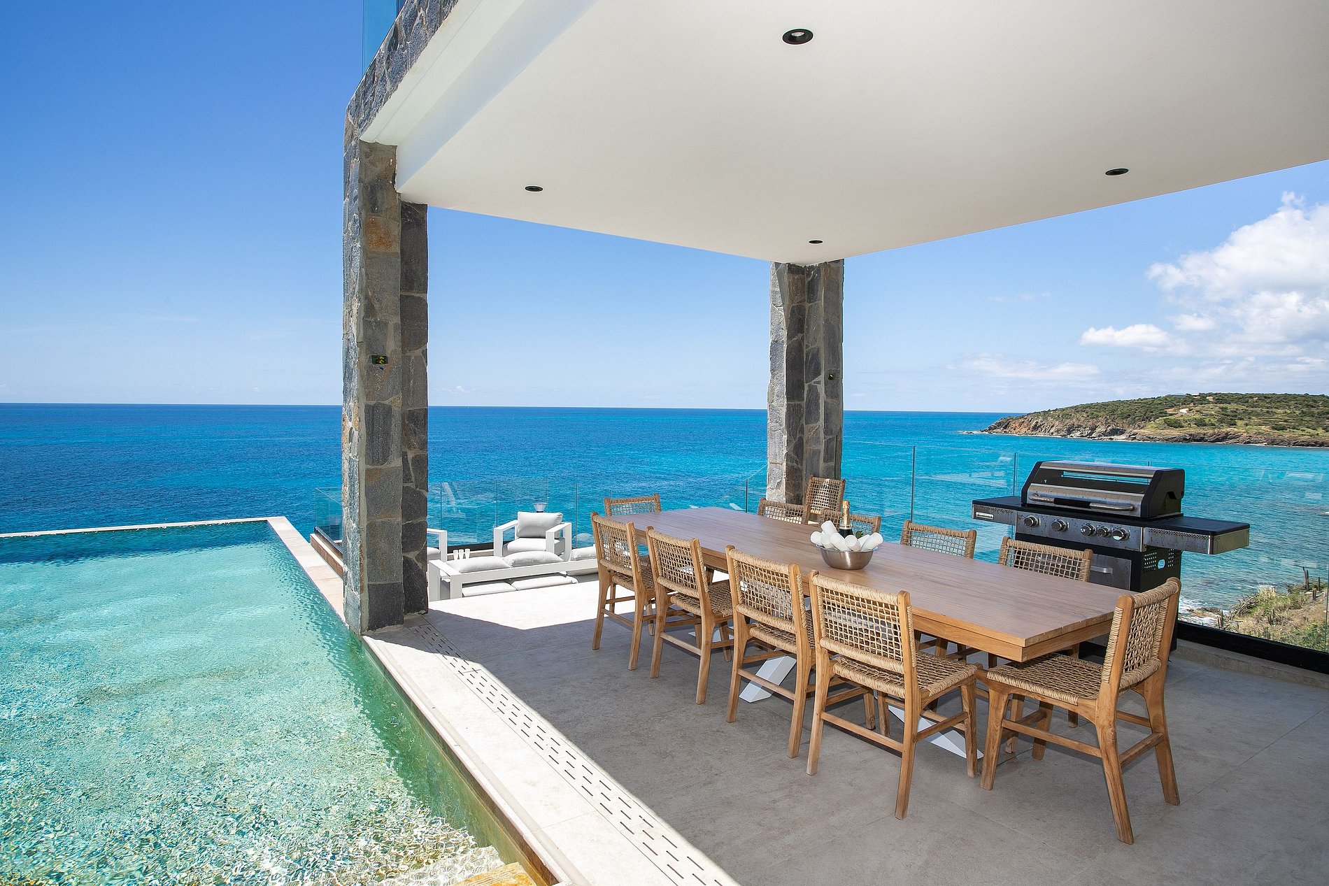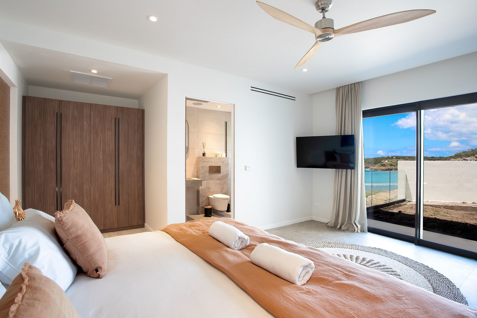 Esta nueva villa de seis habitaciones en Indigo Bay combina una arquitectura contemporánea con el lujo refinado del Caribe, ofreciendo vistas panorámicas al mar y a la isla de Saba. Su diseño abierto y los ventanales de piso a techo crean un ambiente luminoso y amplio que conecta a la perfección los espacios interiores y exteriores.