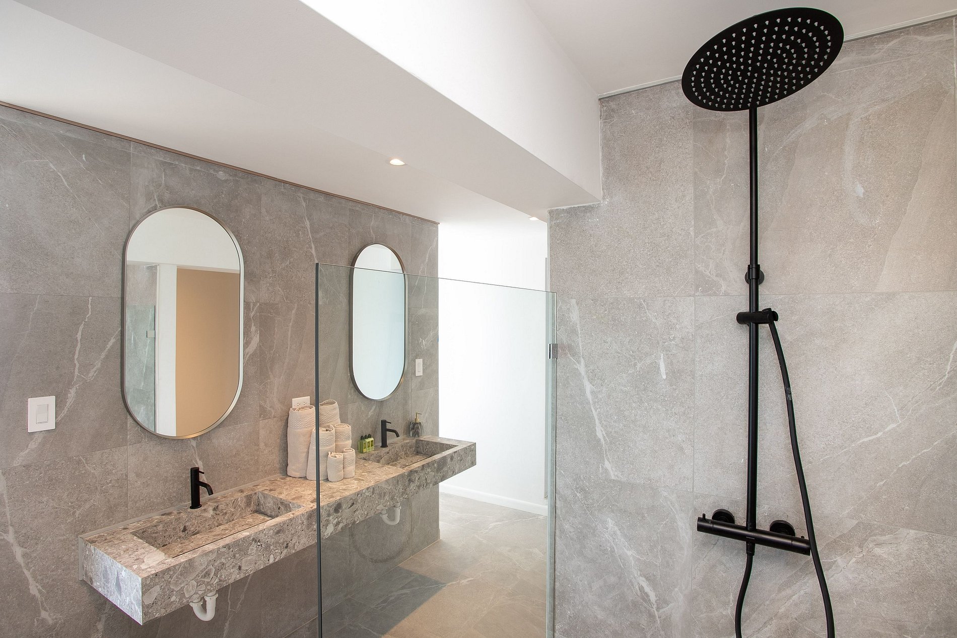 Cada una de las seis habitaciones está diseñada para brindar privacidad y confort, con camas king-size, baño en suite y acceso directo a terrazas o balcones. La habitación principal ofrece impresionantes vistas al mar y un lujoso baño con ducha tipo walk-in. La distribución es perfecta para grupos grandes, reuniones familiares o amigos que viajan juntos.