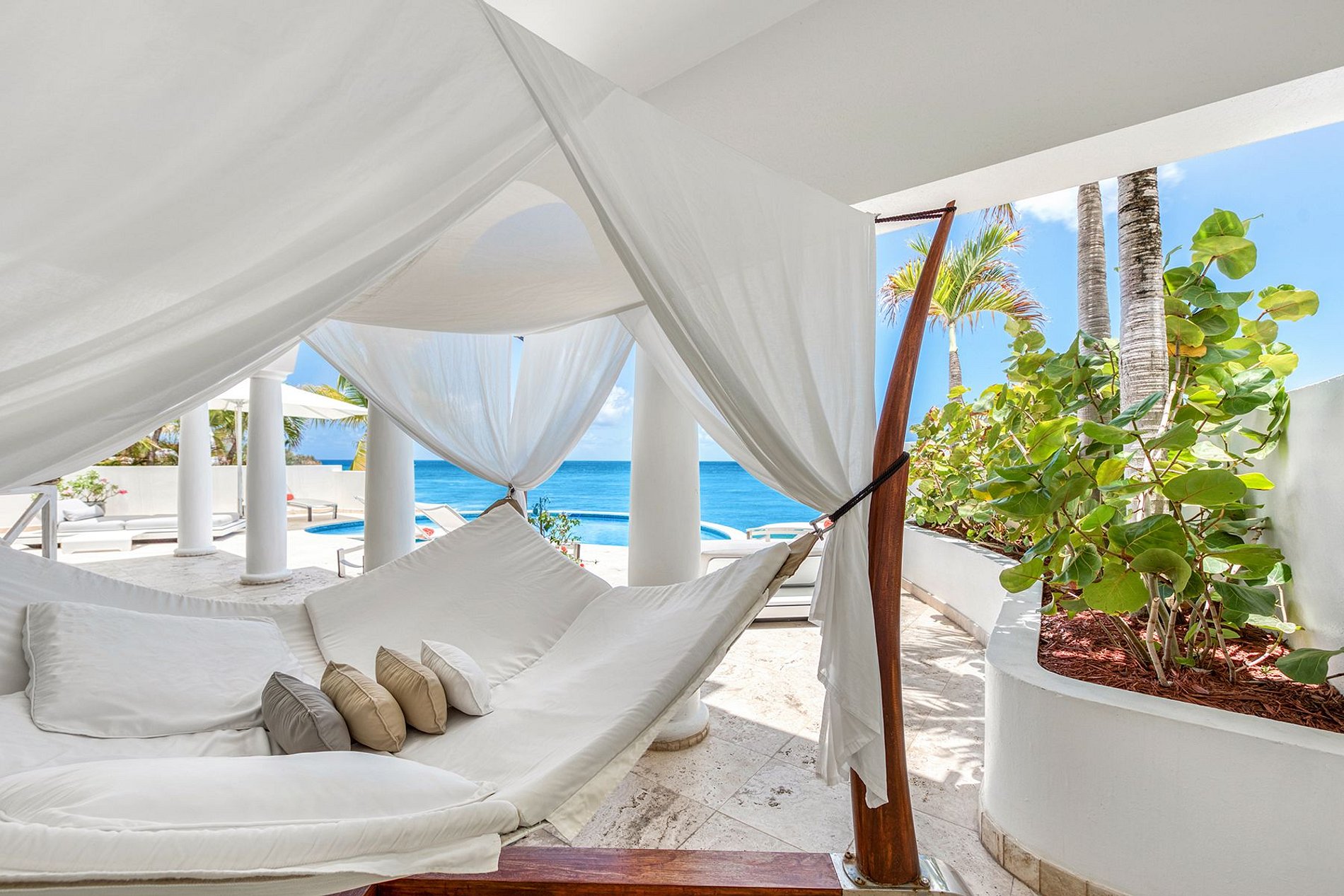 Con un jardín exótico y espacios interiores contemporáneos enmarcados por arte curado, esta elegante villa frente al mar ofrece privacidad, confort y acceso directo a la arena. Ubicada en una exclusiva comunidad cerrada en la frontera franco-holandesa, combina la vida caribeña moderna con un diseño ecléctico y vistas panorámicas al mar.