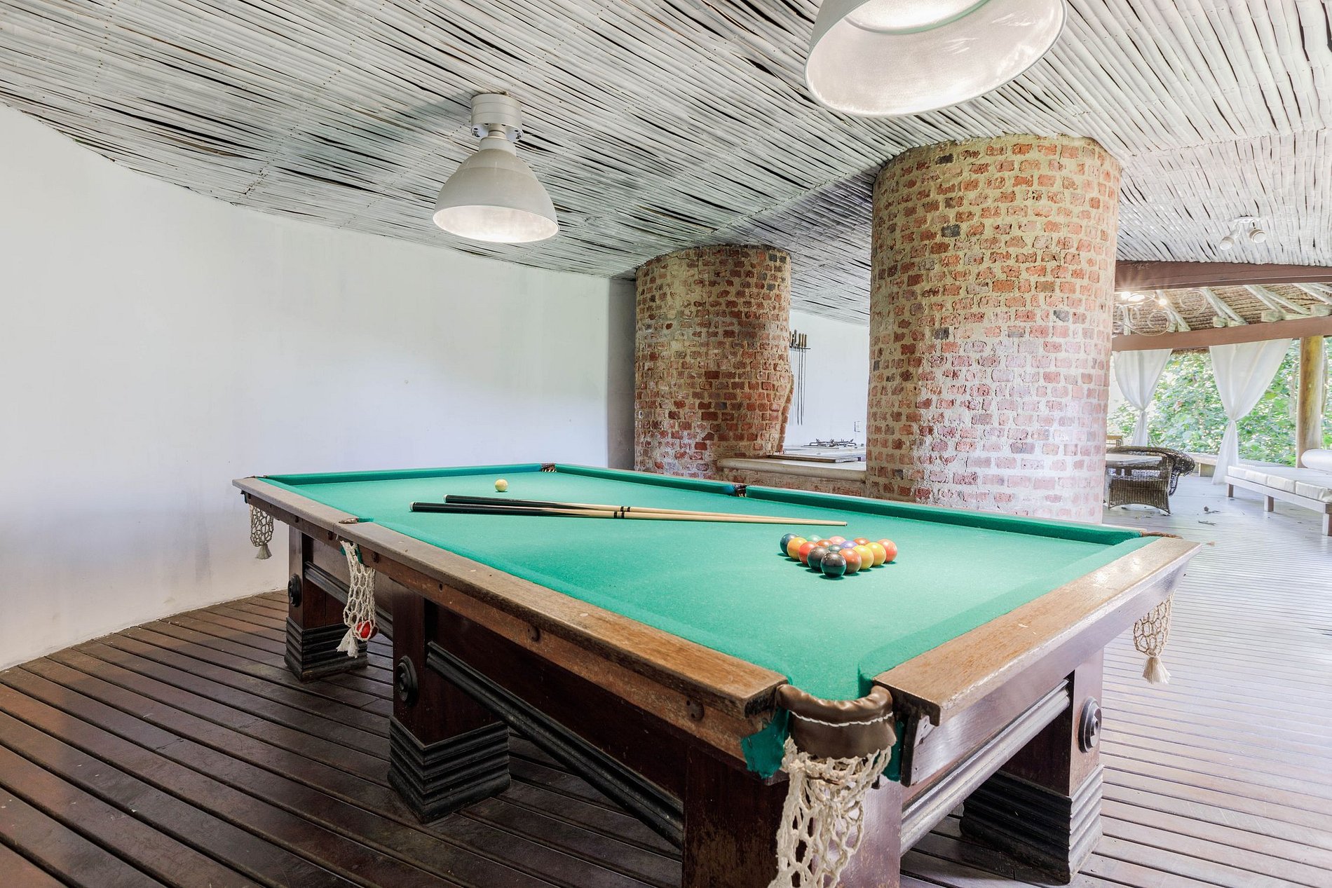 Amplias áreas de entretenimiento y entretenimiento con una increíble piscina, spa, 2 canchas de tenis, mesa de billar Brunswick, área gourmet con barbacoa y horno de pizza.