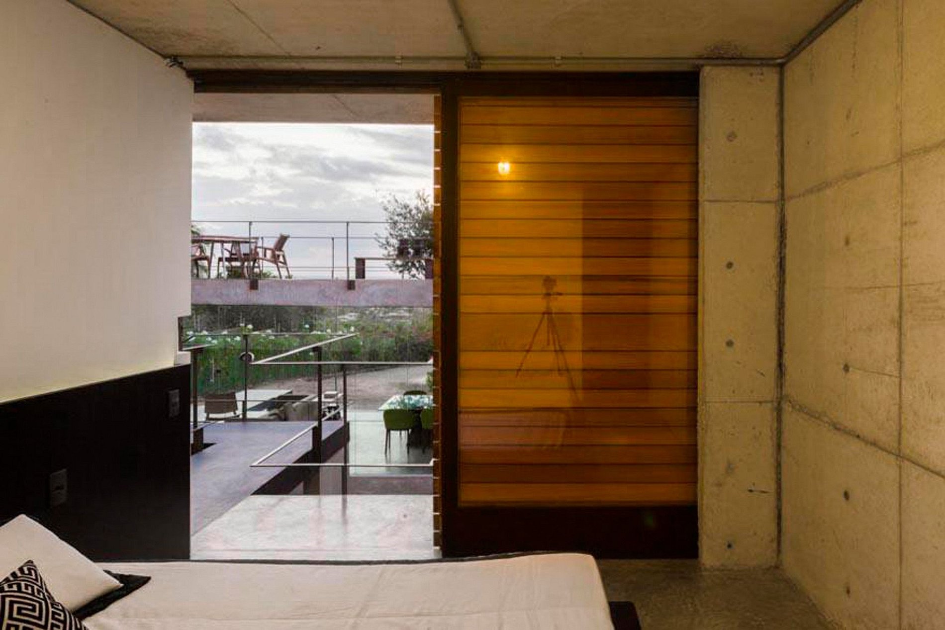 Es en la animada zona de Pipa que es la casa de este arquitecto. Está ubicado en una comunidad cerrada / hotel y ofrece una increíble vista panorámica de la laguna donde puedes disfrutar de una sublime puesta de sol.