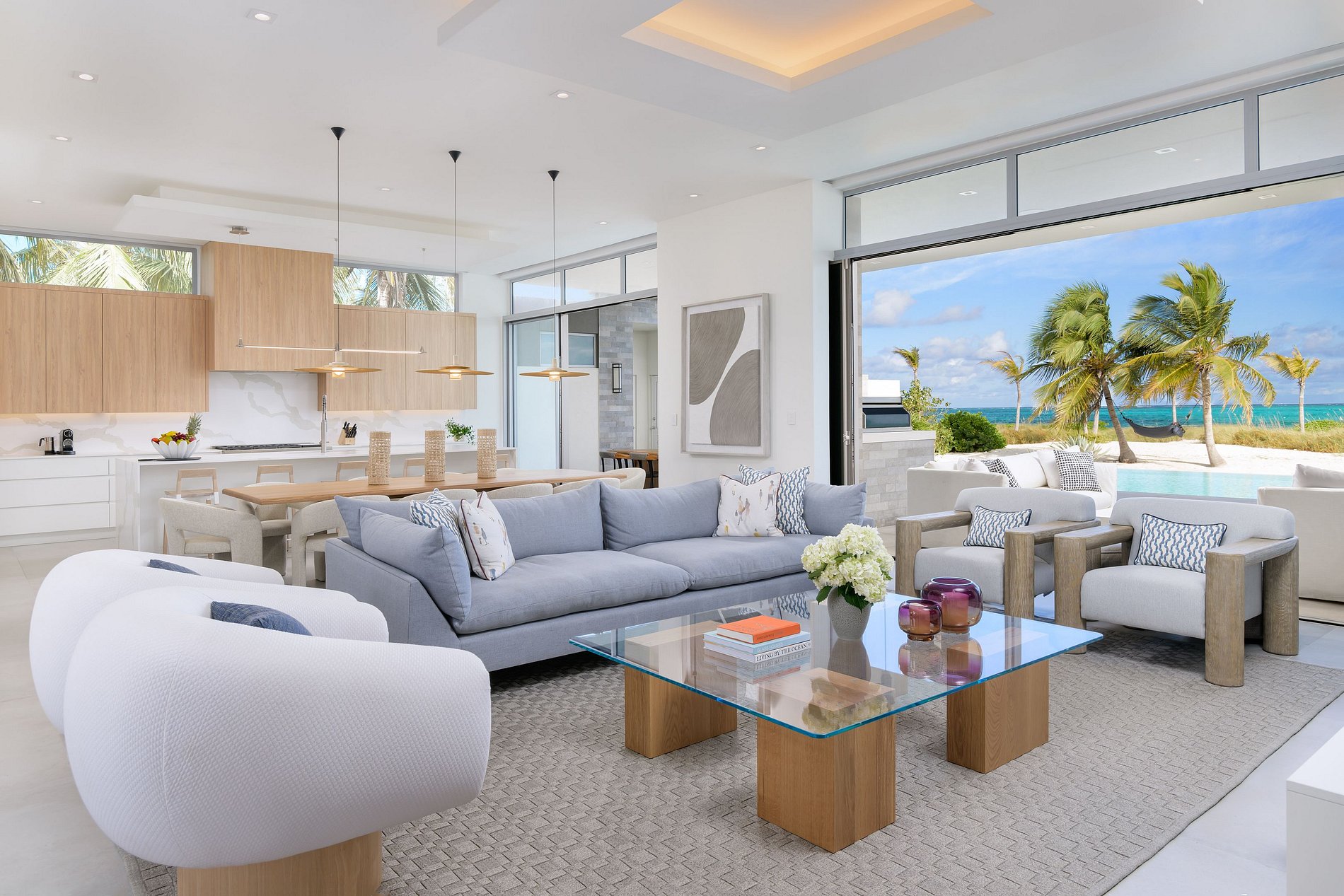 Diseñada con los más altos estándares, ofrece espacios abiertos con techos altos, luz natural y acabados elegantes en piedra, granito y cuarzo. Las ventanas de piso a techo enmarcan el mar turquesa, mientras que el balcón de vidrio envolvente y la terraza junto a la piscina permiten disfrutar al máximo de la belleza de Grace Bay.
