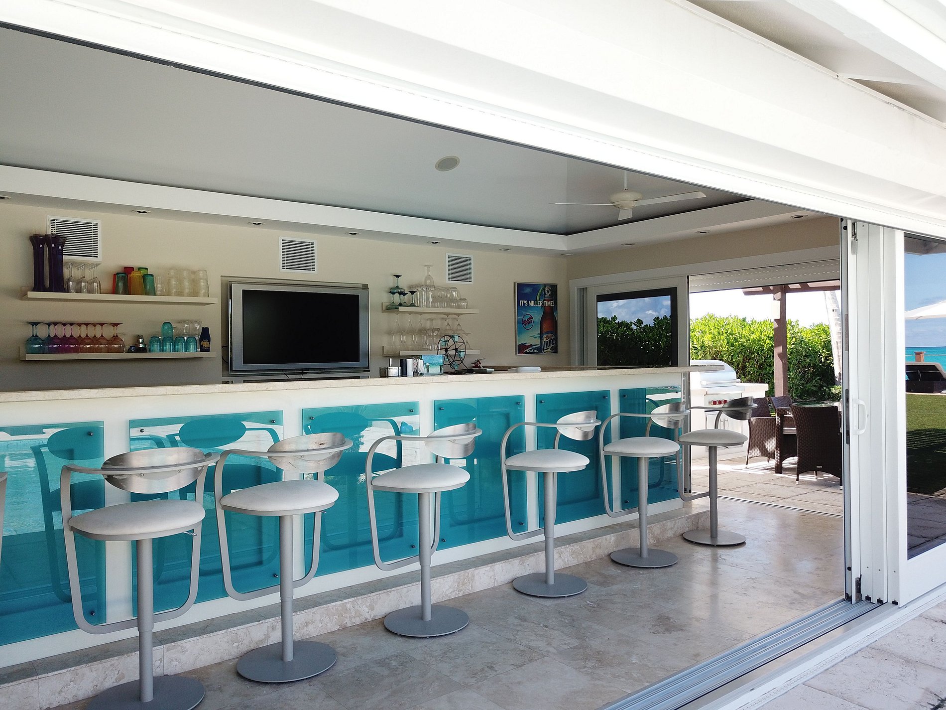 En el exterior, los huéspedes disfrutan de una piscina privada, bar y zona de barbacoa ideal para cenas al aire libre y cócteles al atardecer. La distribución es perfecta para familias o grupos pequeños, con vistas al mar, canal y jardín desde los dormitorios del segundo piso. Con la playa a solo unos pasos y actividades como kayak y esnórquel disponibles desde la propiedad, esta es una escapada ideal para quienes aman el sol, el mar y la tranquilidad.
