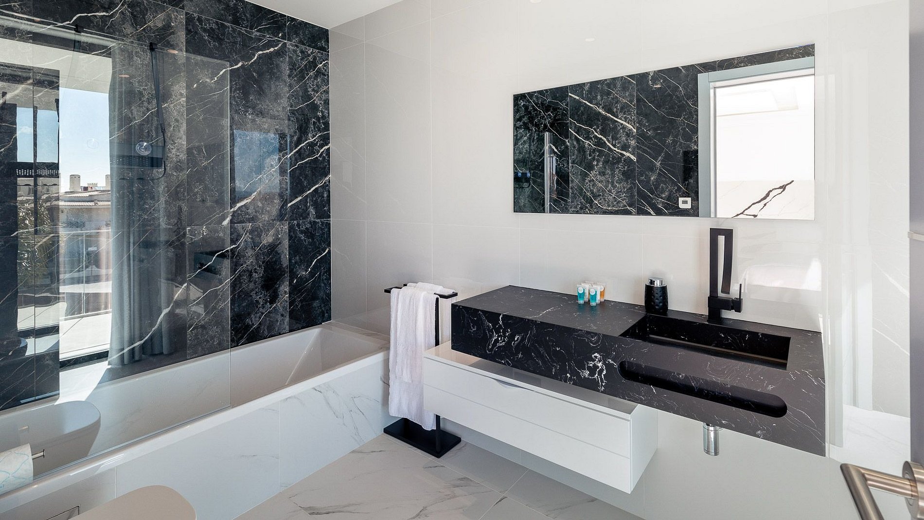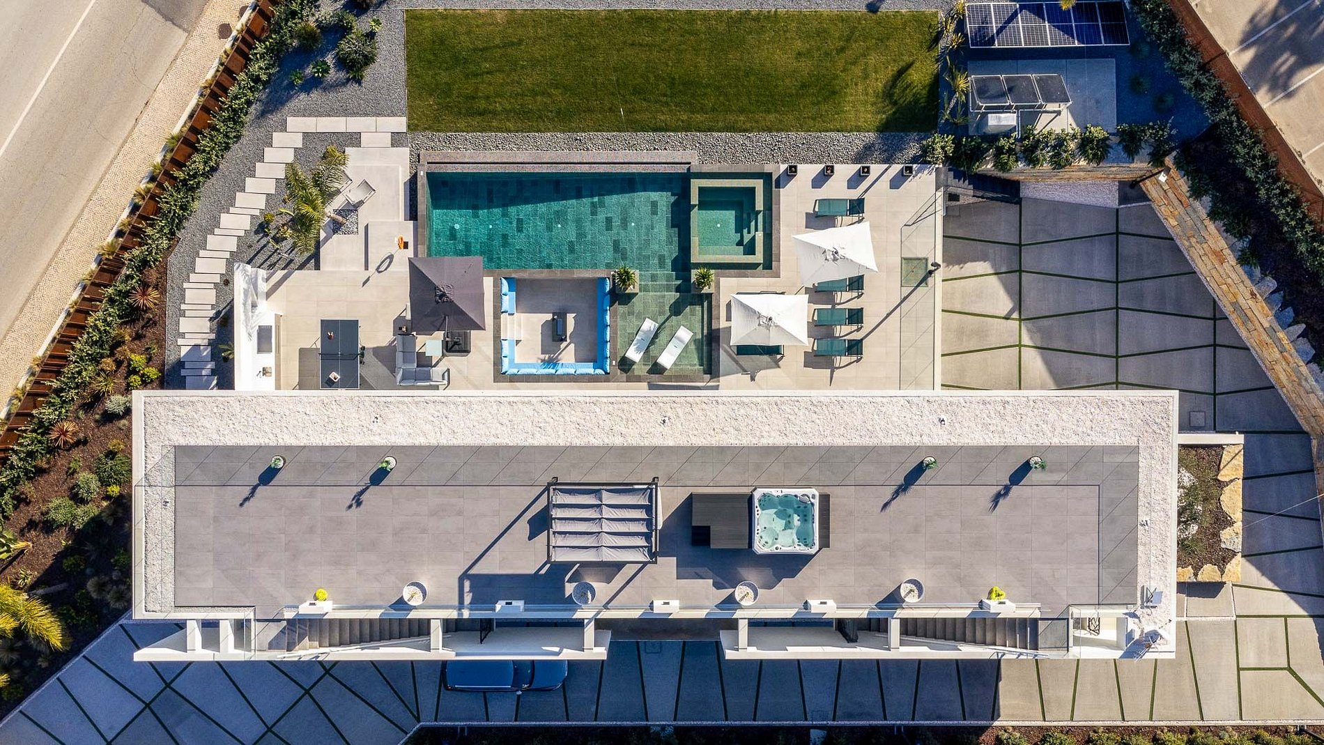 La villa cuenta con una destacada área de piscina, con múltiples niveles que incluyen una zona profunda para adultos y una zona poco profunda para niños. La cocina exterior, barbacoa, fogón y sistema de sonido crean el ambiente perfecto para socializar y disfrutar al aire libre. En la azotea, encontrarás un amplio espacio con jacuzzi y vistas impresionantes al mar.
