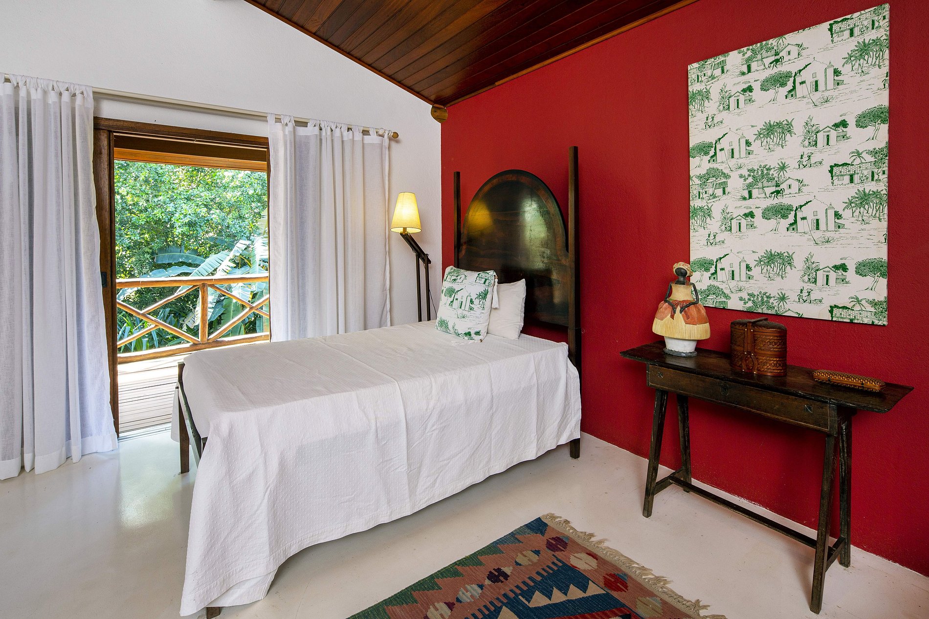 Suite 4: cama queen, aire acondicionado, doble lavabo, balcón con vista al jardín.