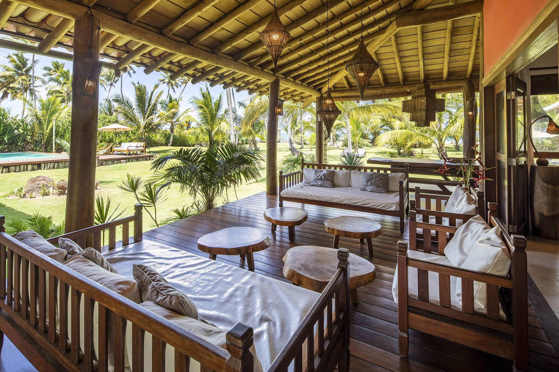 Las agradables áreas sociales interiores y exteriores son lugares perfectos para relajarse con amigos, con una impresionante vista al mar y a los cocoteros de esta paradisíaca playa. con una llave de oro frente a la puesta de sol. El encantador pueblo de Barra Grande con sus tiendas, restaurantes y bares está a solo minutos de la casa.