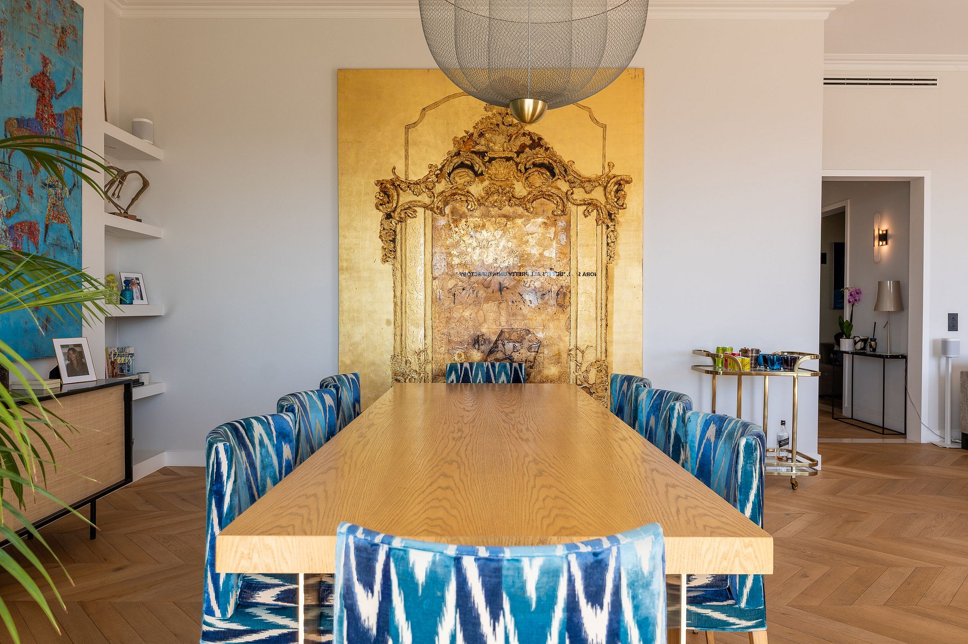 La sala de estar, el comedor y la cocina totalmente equipada se abren directamente a un amplio balcón que recorre toda la fachada. Lo suficientemente espacioso como para desayunar o tomar un aperitivo al atardecer, este balcón ofrece una vista panorámica de ensueño: la Torre Eiffel, Los Inválidos, el Panteón, el Palais de Tokyo, y justo enfrente, el majestuoso Palais Galliera.