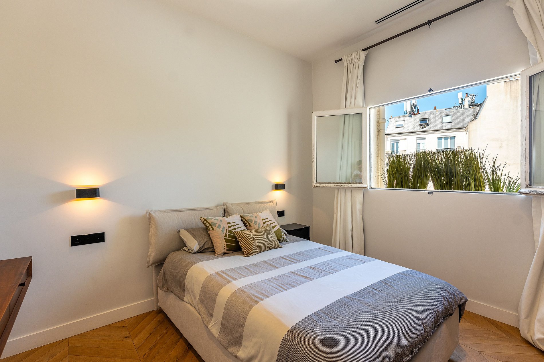 Las habitaciones están orientadas hacia la parte trasera del edificio, lo que garantiza una tranquilidad absoluta, perfecta para descansar luego de un día descubriendo la ciudad.