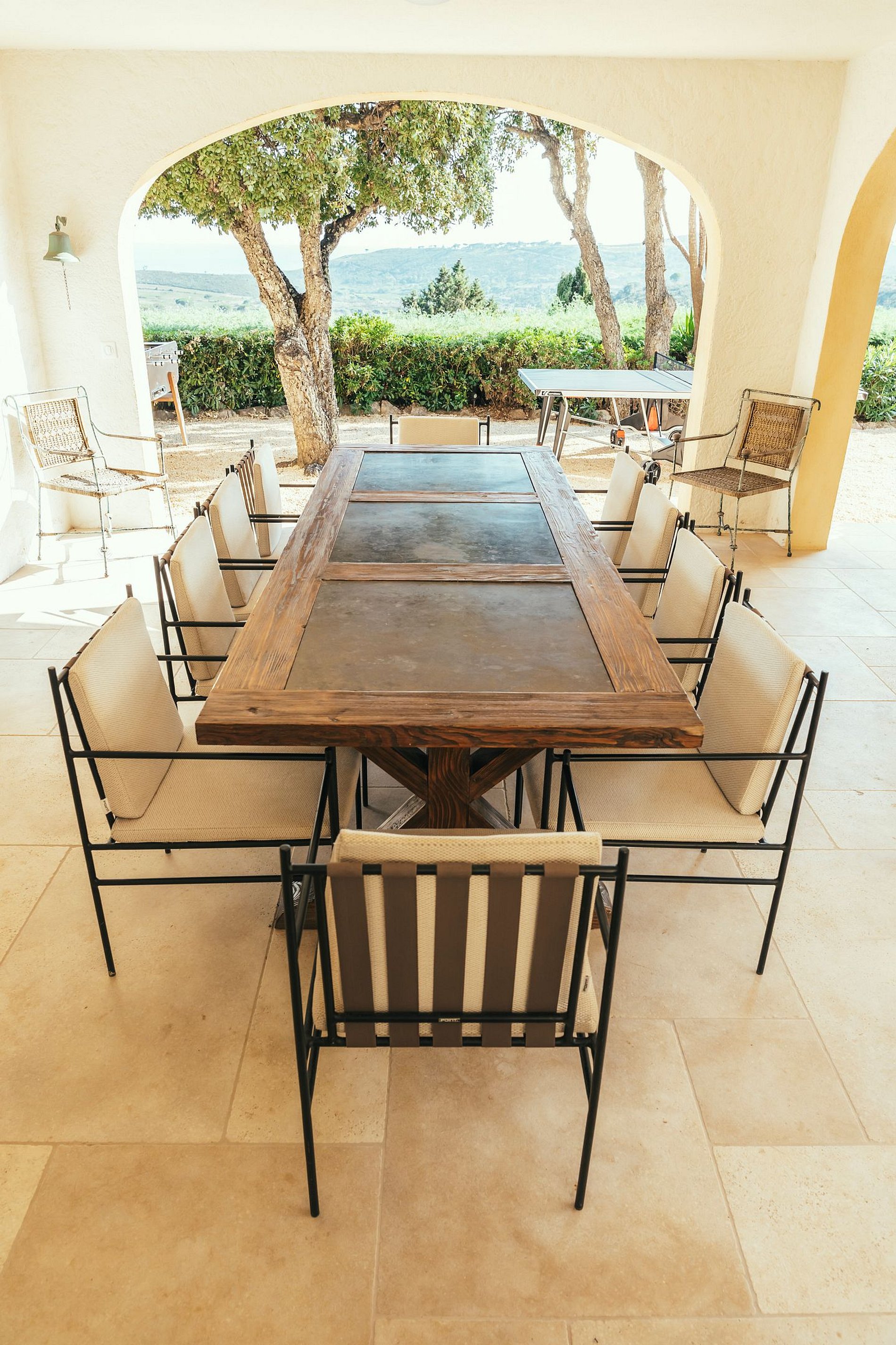 Situada en un dominio exclusivo, ofrece acceso privilegiado a dos canchas de tenis de césped, ideales para los amantes del deporte, y a pocos pasos, la espectacular playa de Escalet invita a momentos de relajación junto al mar. Desde la villa, disfrute de una vista espectacular sobre la garriga mediterránea y el mar resplandeciente, un espectáculo natural que combina serenidad y belleza salvaje. Diseñada con materiales de alta calidad, esta residencia climatizada cuenta con un salón acogedor y encantador, perfecto para reuniones familiares o de amigos. La cocina de alta gama, equipada con electrodomésticos modernos, se abre a un comedor al aire libre adyacente a una cocina exterior y una barbacoa, ideal para cenas bajo las estrellas. Las cinco habitaciones, acompañadas de cuatro elegantes baños, ofrecen un confort refinado. En el exterior, dos salones invitan a la relajación, mientras que una piscina privada (no salada) aporta un toque refrescante. El entretenimiento incluye una mesa de ping-pong y un futbolín para momentos divertidos. La propiedad está rodeada por un jardín paisajístico impecable, y una villa adyacente, propiedad de los mismos dueños, también climatizada con 5 dormitorios, 10 plazas para dormir y su propia piscina, puede alquilarse para grupos más grandes.