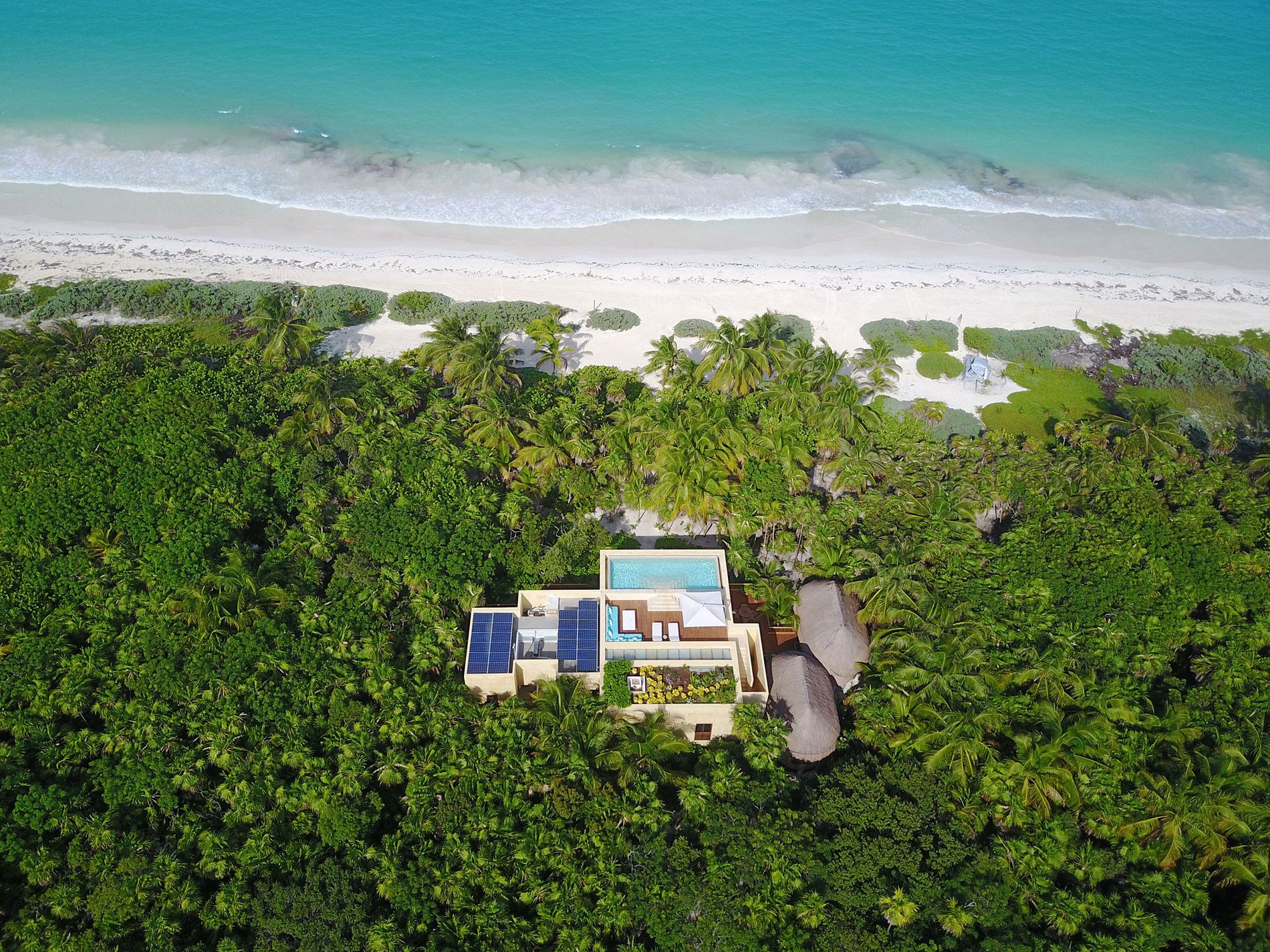 Esta villa ofrece cuatro dormitorios y 4.5 baños en un espacio habitable de 4,000 pies cuadrados con un diseño hermoso, y está perfectamente ubicada dentro de una comunidad cerrada segura en la Reserva Sian Kaan.
