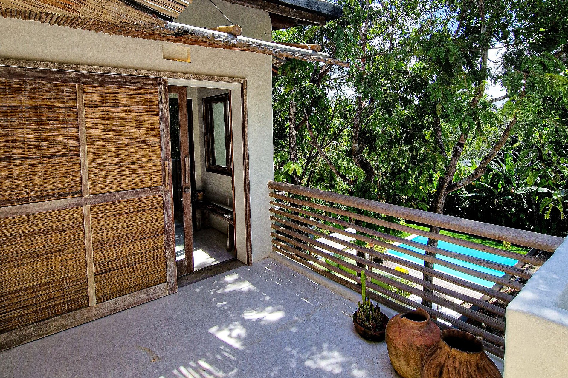La casa principal cuenta con tres suites con hermosos baños, todos equipados y completos. Junto a la piscina, la casa cuenta con dos bungalows con mucho encanto. Todas las habitaciones tienen mosquiteras.