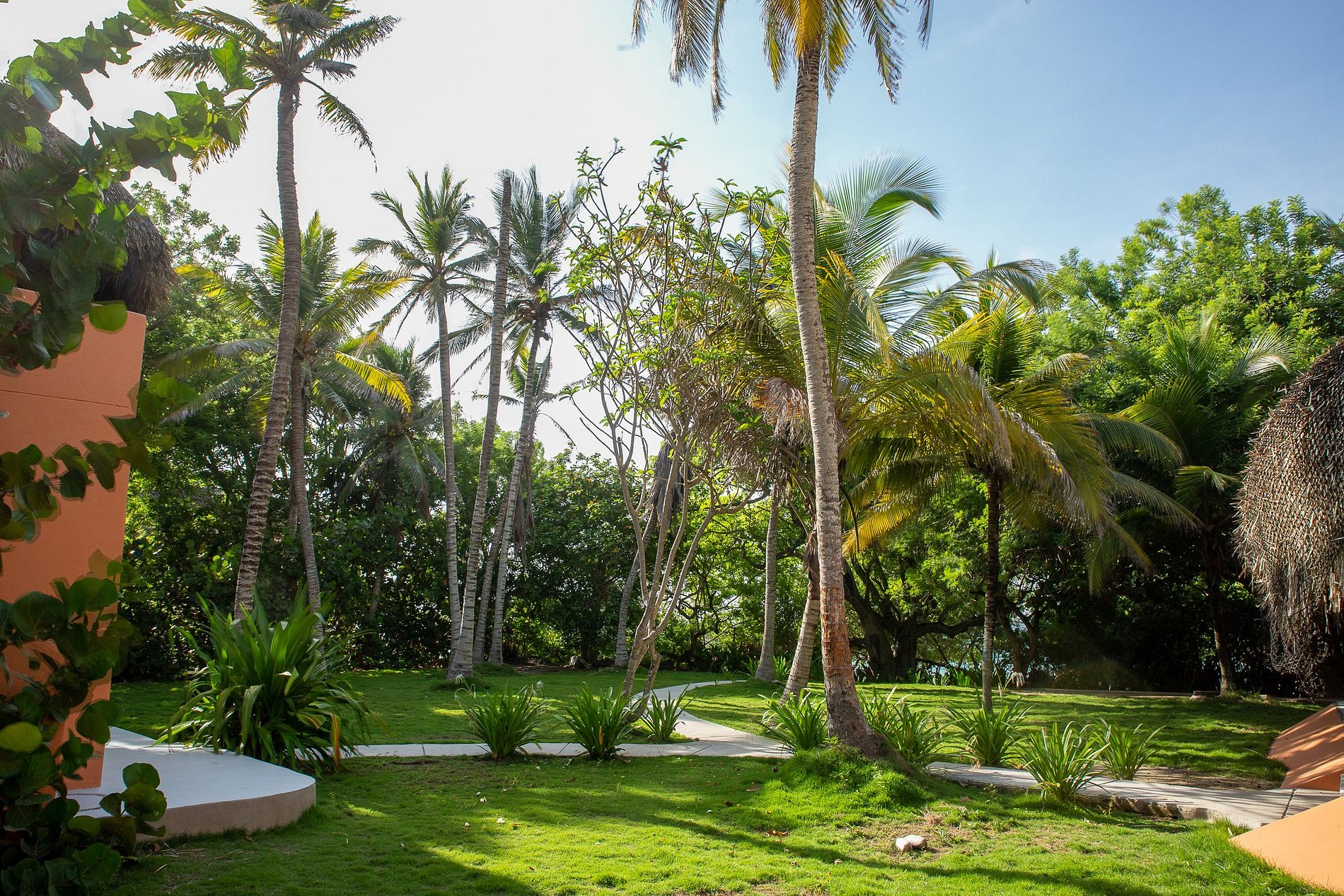 La villa tiene un lindo jardín y un amplio espacio, perfecto para familias y grupos que buscan un ambiente tranquilo, lejos de los centros urbanos y poder nadar en el hermoso mar turquesa del Caribe.