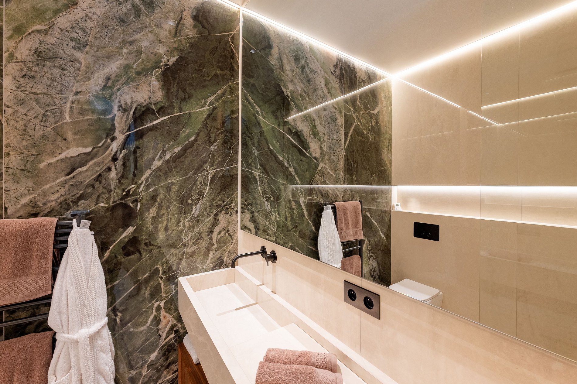 Con 300m² de espacios elegantemente diseñados y climatizados, la propiedad ofrece 5 amplios dormitorios, cada uno equipado con su propio baño privado y televisión, asegurando comodidad, privacidad y lujo para cada huésped.
