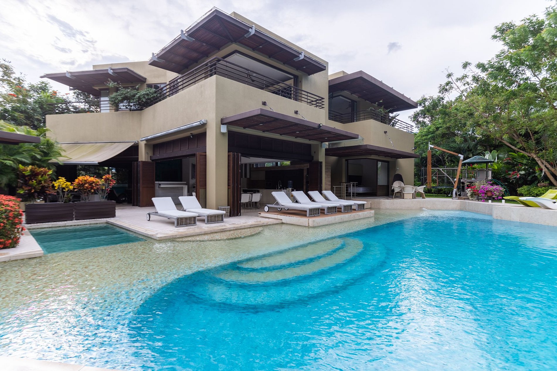 La casa es muy espaciosa, tiene un diseño arquitectónico a gran escala con tres niveles. En el primer nivel podrá encontrar el turco, sauna, salón de juegos, habitación de huéspedes y un increíble teatrino con capacidad para 12 personas, donde podrá pasar una noche de películas con su grupo.