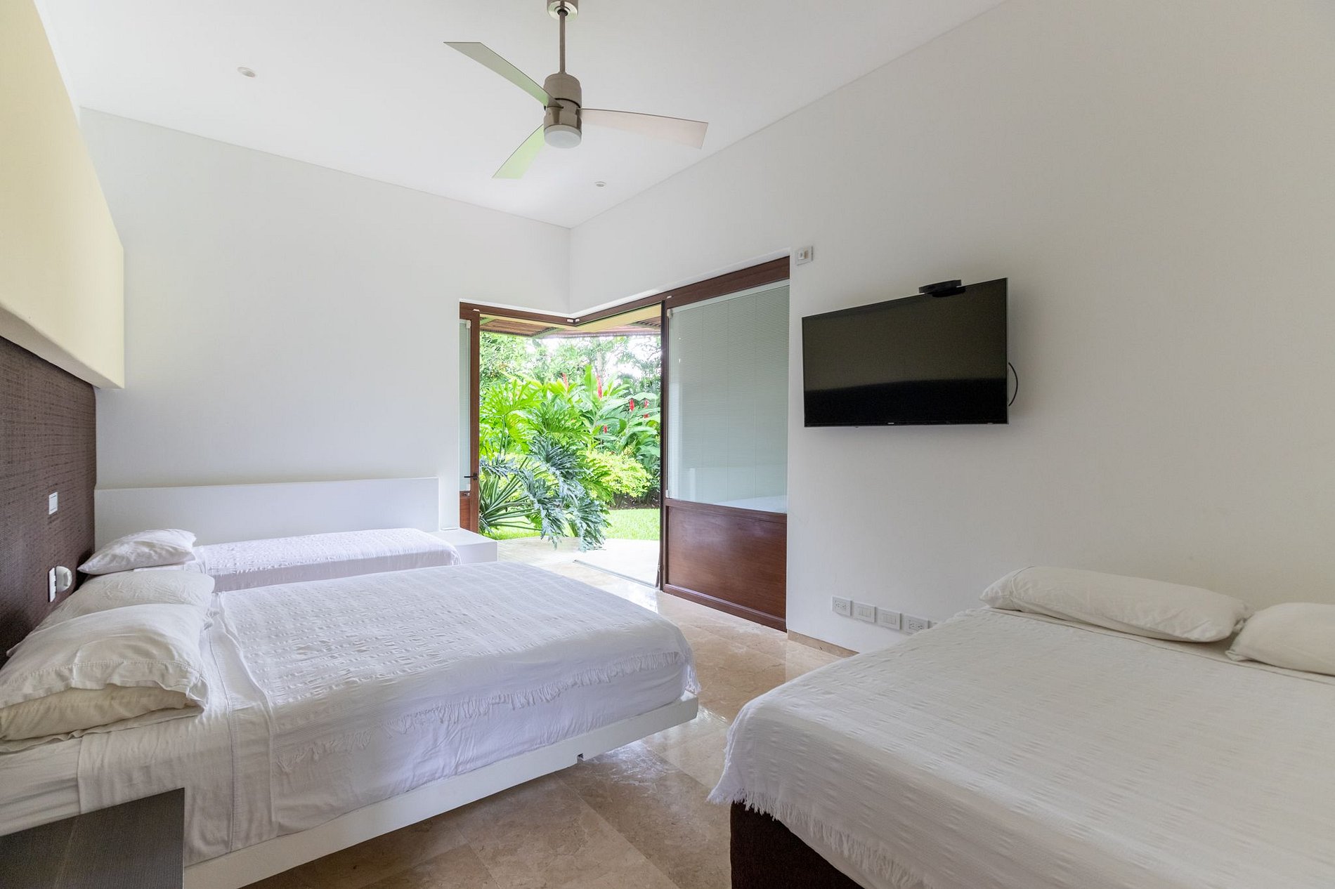 En el tercer nivel están las 6 habitaciones con capacidad máxima para 21 huéspedes, cada una con baño privado, con vista a la piscina o a los jardines que rodean esta hermosa propiedad. Aquí tendrá una estadía agradable y placentera, donde podrá desconectarse del ruido de la ciudad.
