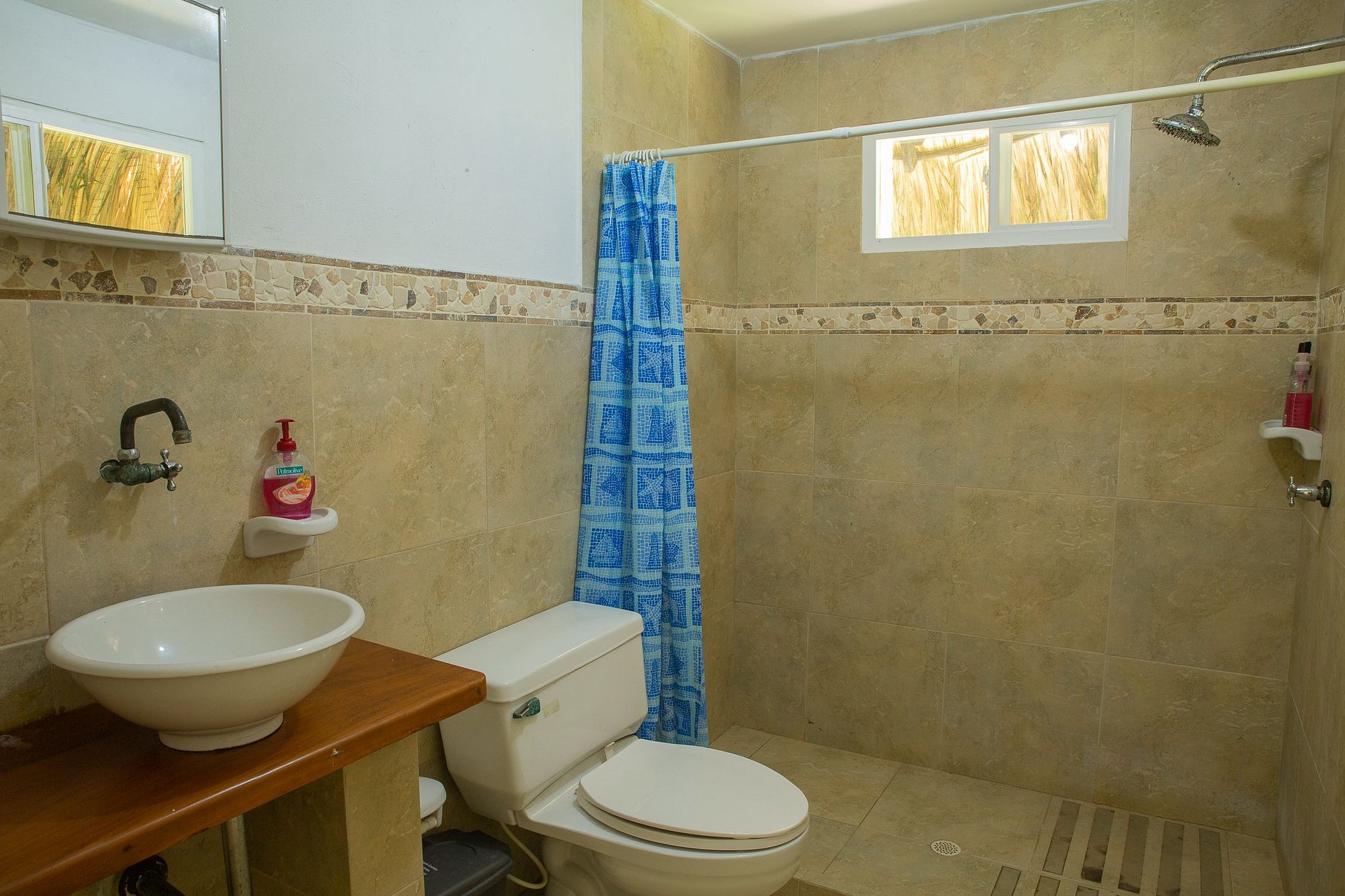El área de los cuartos se distribuye a lo largo del pasillo; en total hay 4 habitaciones, dos con camas king size y baño privado y 2 habitaciones con 3 camas individuales. Todos los dormitorios tienen aire acondicionado.