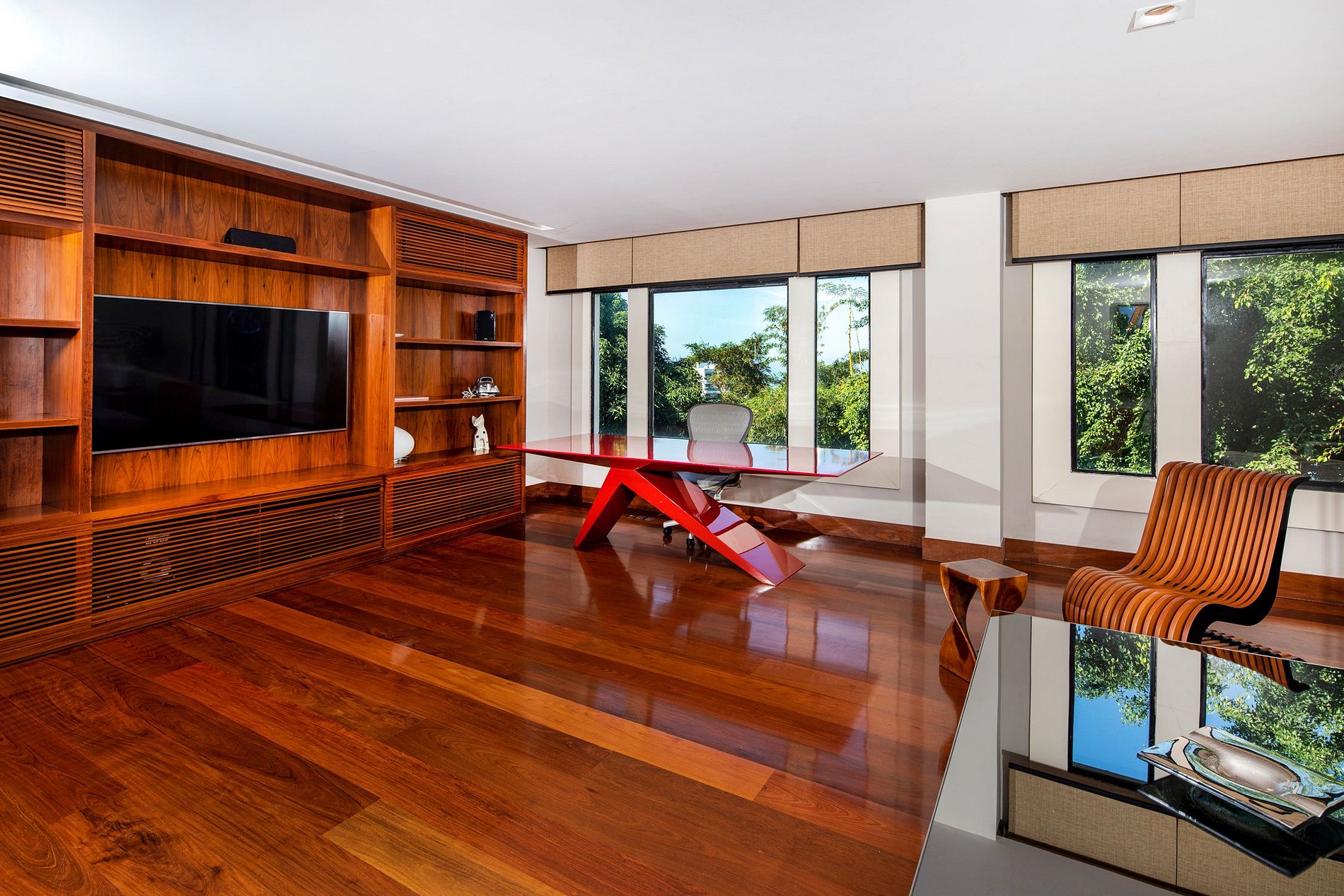 Para quienes buscan confort y relajación encontrará una amplia terraza con asoleadoras, sauna y un solárium, así como una barbacoa para aprovechar al máximo de la vida al aire libre en Río. Si desea alquilar la Villa para un evento especial, hay un gran garaje con espacio para estacionamiento alternativo.Todas las habitaciones tienen vista al mar, incluyendo la sala de estar y la cocina. El área total de la grandiosa propiedad es de 4000m2, donde encontrara jardines, una fuente, palmeras y exuberante vegetación tropical. Con una ubicación perfecta, este es el lugar ideal para aquellos que desean privacidad y exclusividad, y conformarse con nada menos que el lujo absoluto.