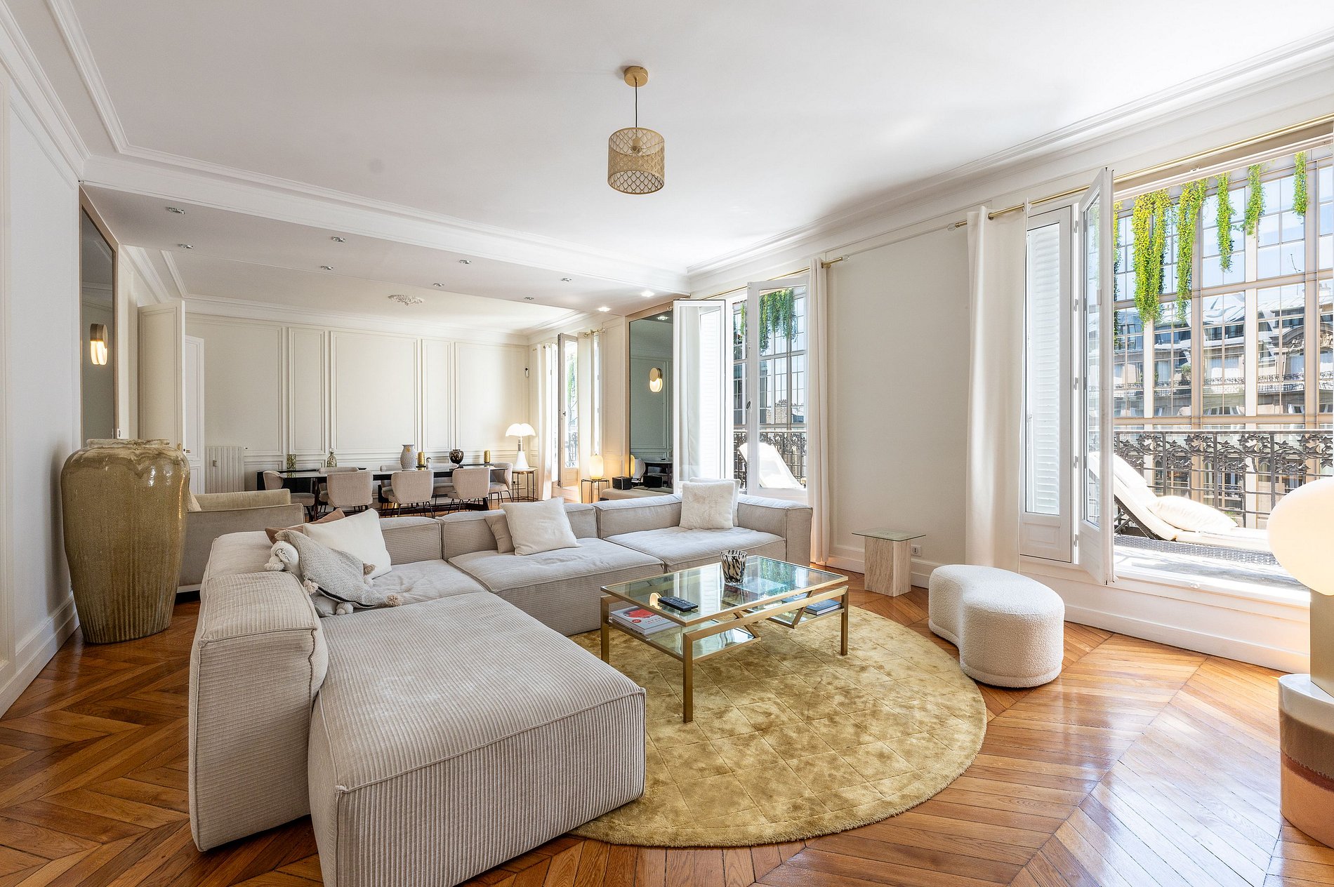 Ubicado en el quinto piso de un distinguido edificio haussmanniano, este apartamento de 240 m² ofrece una experiencia verdaderamente excepcional, justo enfrente del prestigioso hotel cinco estrellas Le Brach Paris.