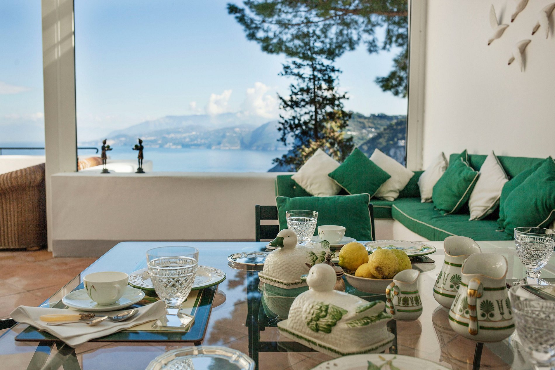 Al entrar a esta Villa, te maravillarán las vistas al océano y las montañas desde la piscina, así como sus cautivadores jardines llenos de bugambilias, rosas y jazmines. Situada en una ladera que ofrece la ventaja de dominar el Golfo de Sorrento, esta propiedad presenta un panorama incomparable que abarca el Vesubio, la Bahía de Nápoles, la Costa Amalfitana y la propia Capri. Si bien llegar en coche es sencillo, también existe la opción de dar un paseo tranquilo al corazón de Capri, la icónica "Piazzetta", y es importante mencionar que la propiedad cuenta con su propio funicular privado.