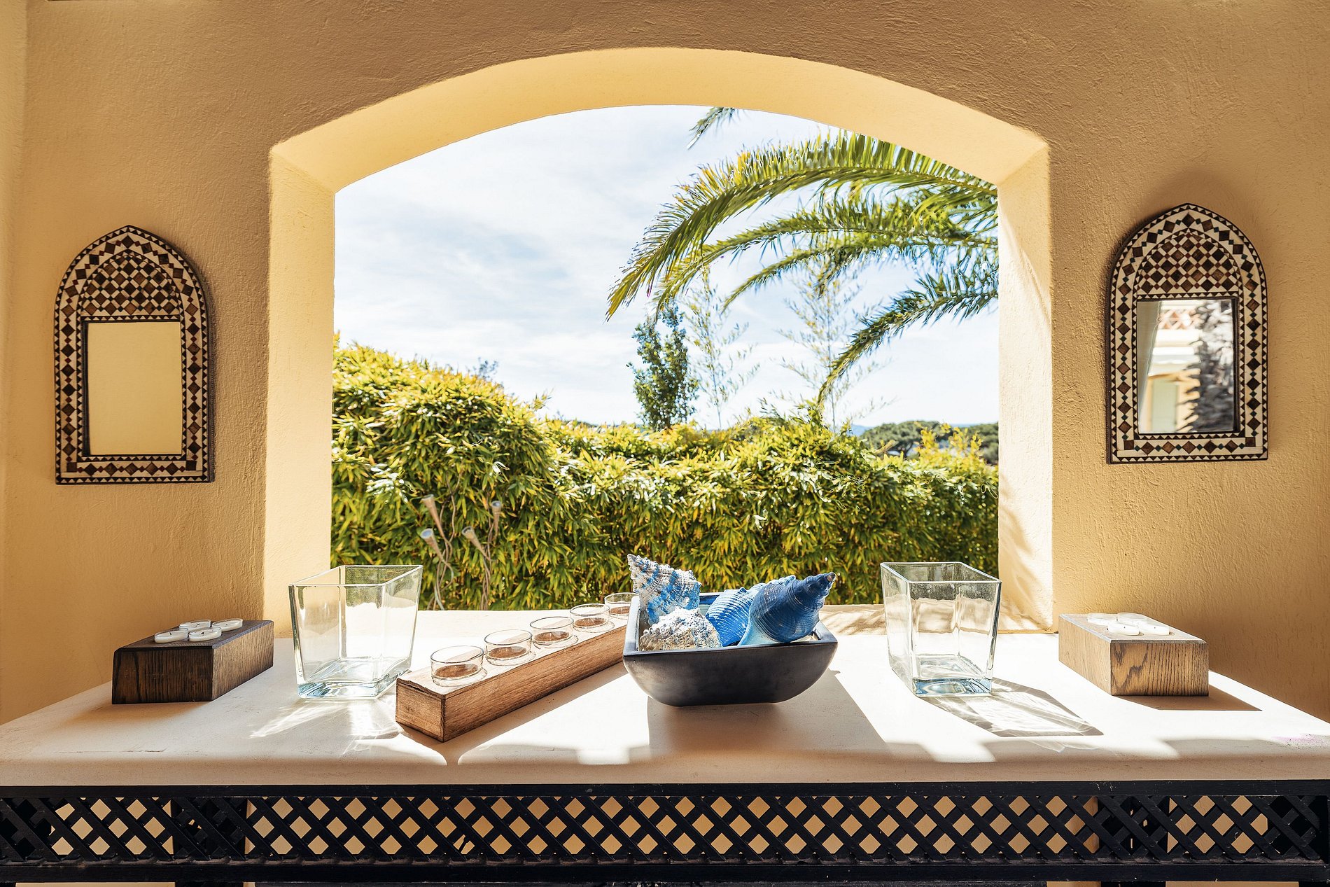 Desde la llegada, se percibe un ambiente de total armonía. La villa ofrece múltiples espacios de convivencia: salón con chimenea, comedores interiores y exteriores, y varias zonas de descanso al aire libre, como el salón “Medina”, el gazebo estilo Mykonos, y una terraza elevada con vistas al jardín.