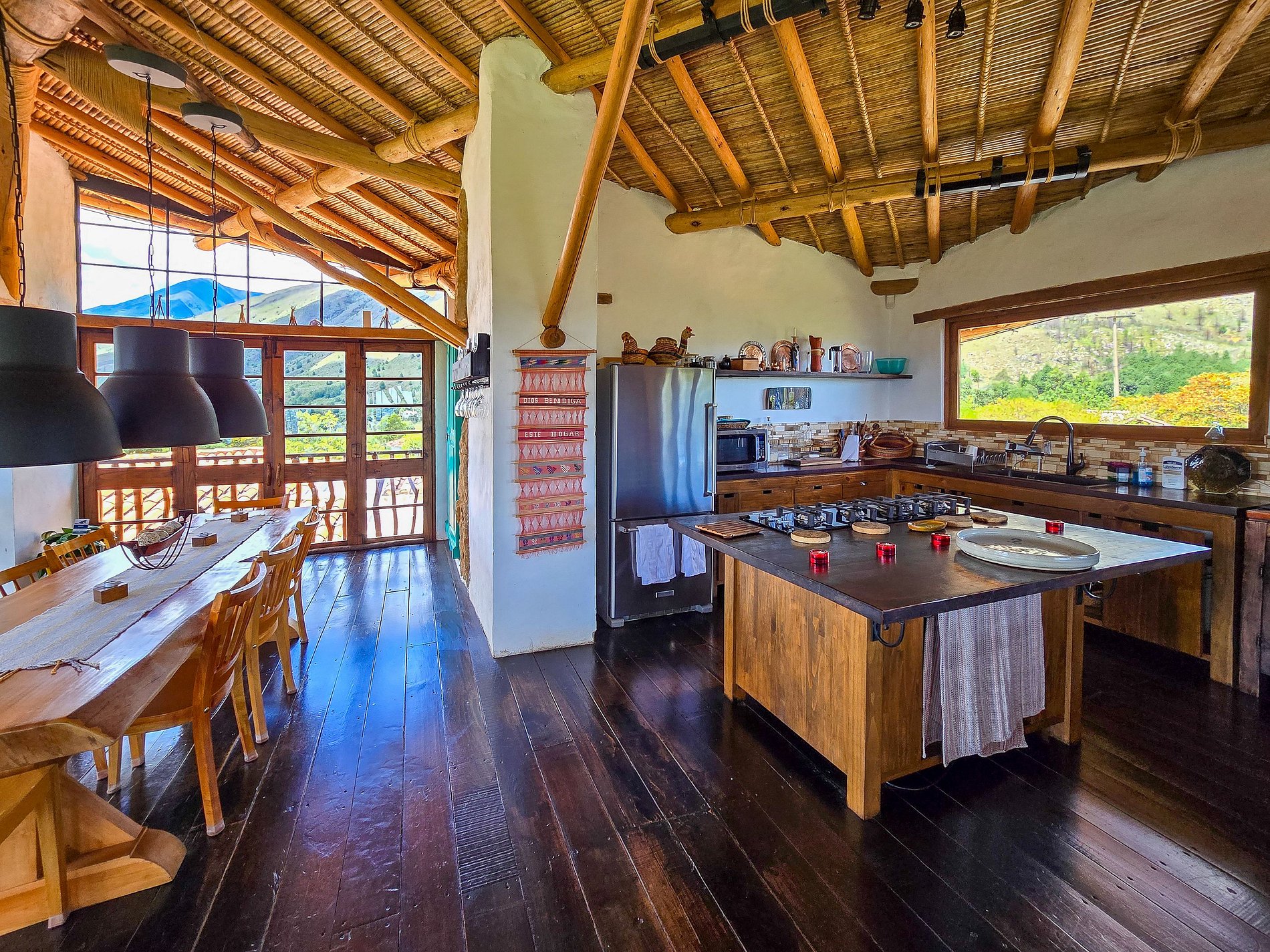 Esta villa excepcional se encuentra a pocos minutos del centro histórico de Villa de Leyva y ofrece una vista abierta a las montañas y valles que rodean el pueblo. Construida en tapia pisada y acabada con piedra tallada, madera y techos tradicionales en caña, la arquitectura se integra de manera orgánica con el paisaje, combinando privacidad, comodidad y un estilo acogedor.