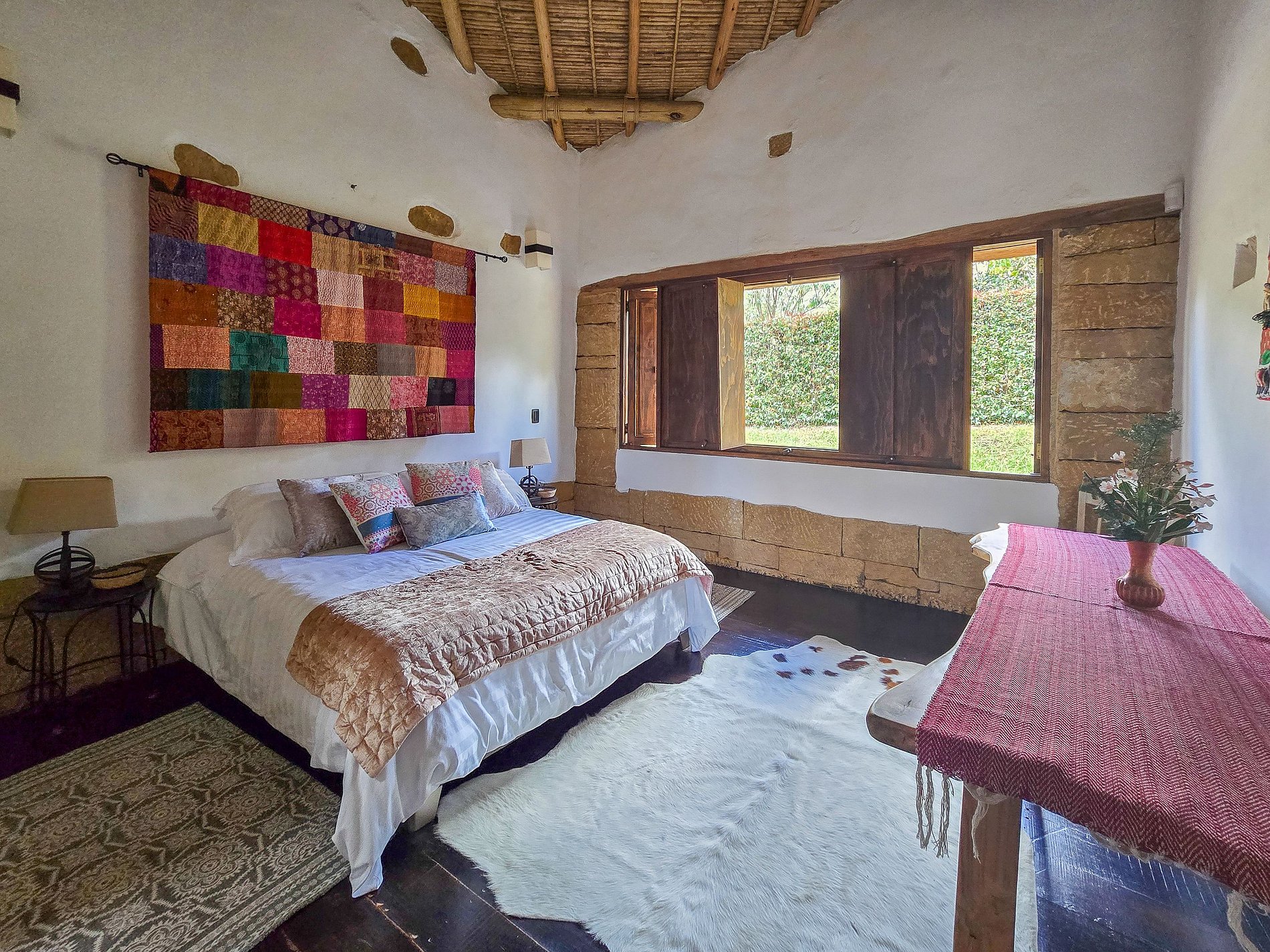 Esta villa excepcional se encuentra a pocos minutos del centro histórico de Villa de Leyva y ofrece una vista abierta a las montañas y valles que rodean el pueblo. Construida en tapia pisada y acabada con piedra tallada, madera y techos tradicionales en caña, la arquitectura se integra de manera orgánica con el paisaje, combinando privacidad, comodidad y un estilo acogedor.