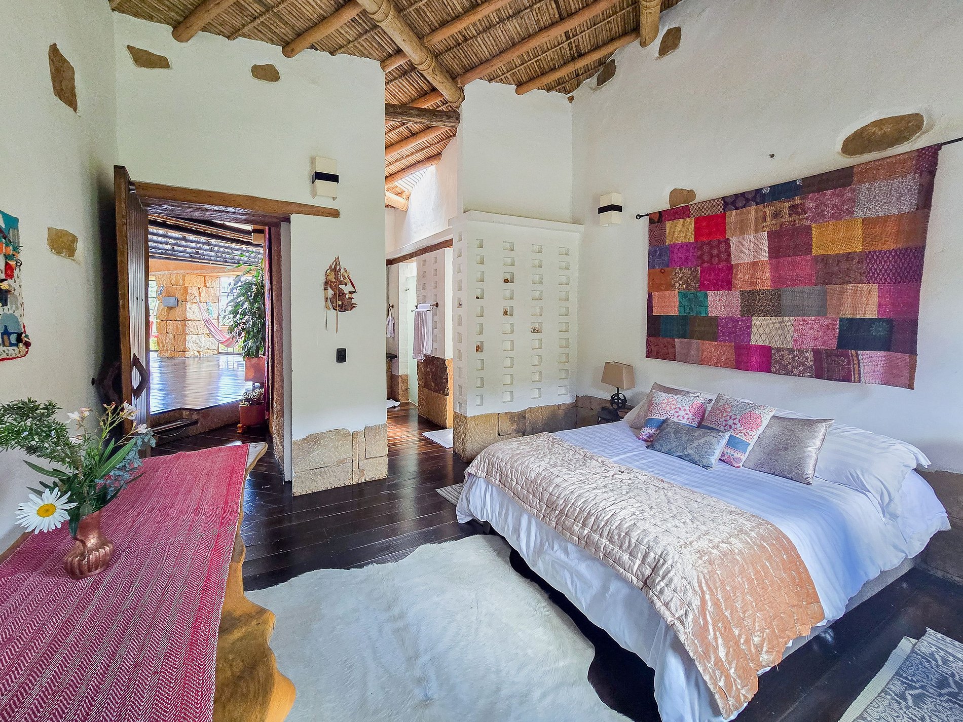 Esta villa excepcional se encuentra a pocos minutos del centro histórico de Villa de Leyva y ofrece una vista abierta a las montañas y valles que rodean el pueblo. Construida en tapia pisada y acabada con piedra tallada, madera y techos tradicionales en caña, la arquitectura se integra de manera orgánica con el paisaje, combinando privacidad, comodidad y un estilo acogedor.