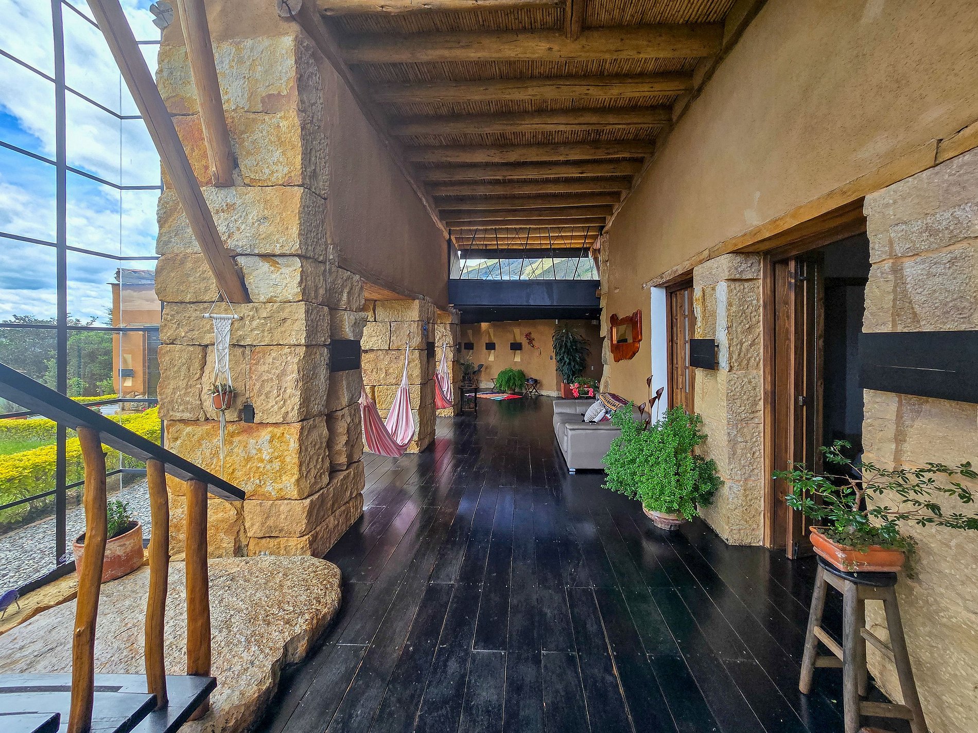Esta villa excepcional se encuentra a pocos minutos del centro histórico de Villa de Leyva y ofrece una vista abierta a las montañas y valles que rodean el pueblo. Construida en tapia pisada y acabada con piedra tallada, madera y techos tradicionales en caña, la arquitectura se integra de manera orgánica con el paisaje, combinando privacidad, comodidad y un estilo acogedor.