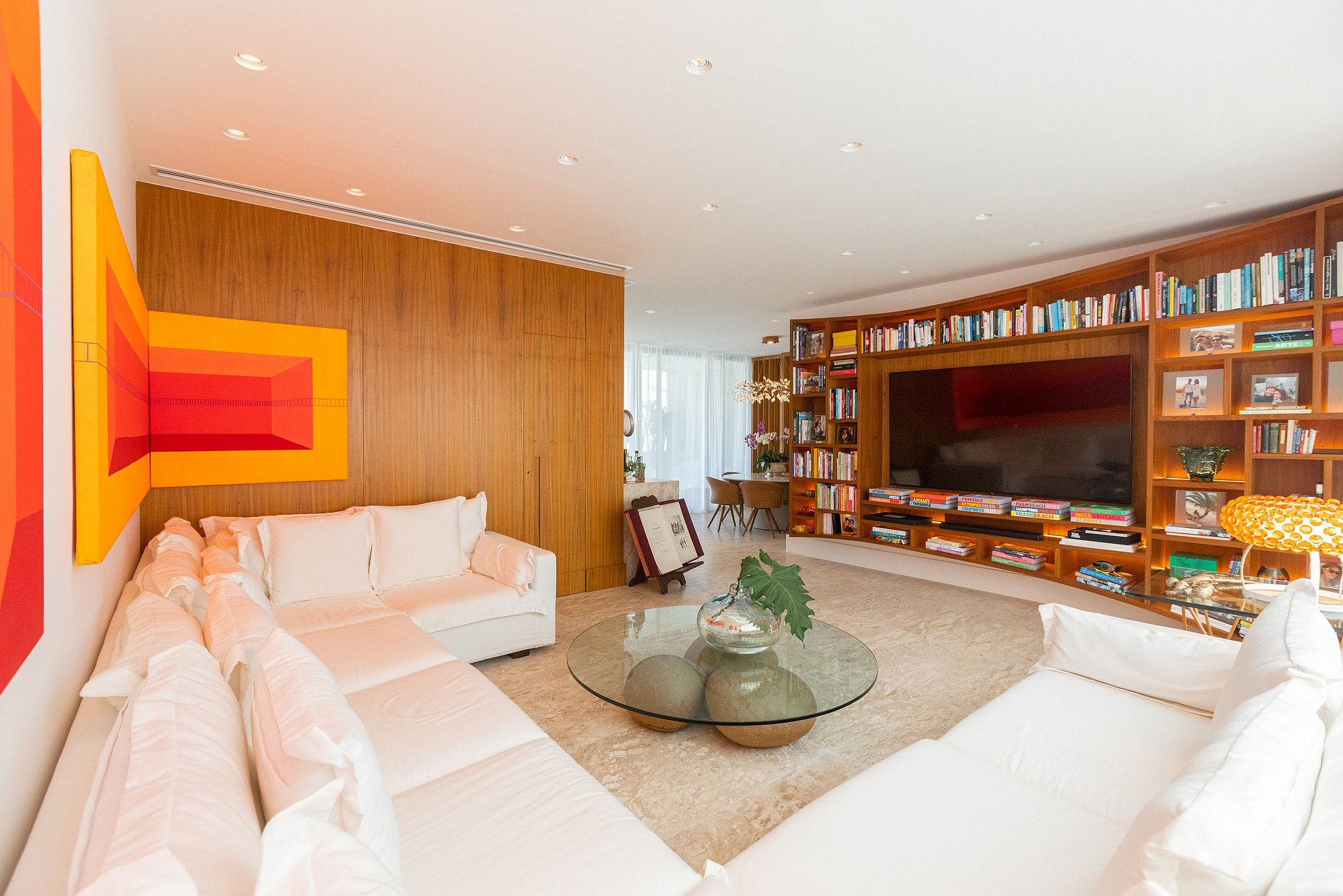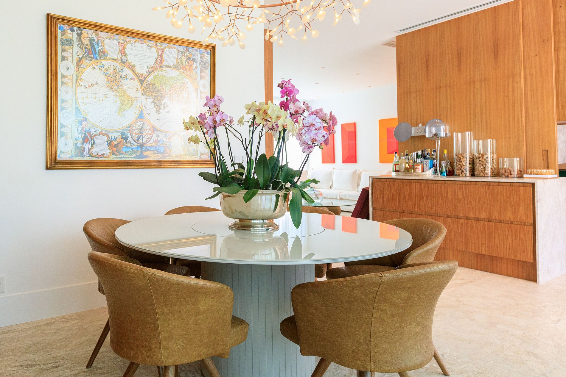 El apartamento fue renovado recientemente por un arquitecto brasileño-suizo, utilizando los mejores materiales del país, incluyendo mármol en las áreas sociales, en la Master Suite y en los baños, parquet húngaro en las otras habitaciones e incluso piedras semipreciosas en el paredes del baño de invitados.