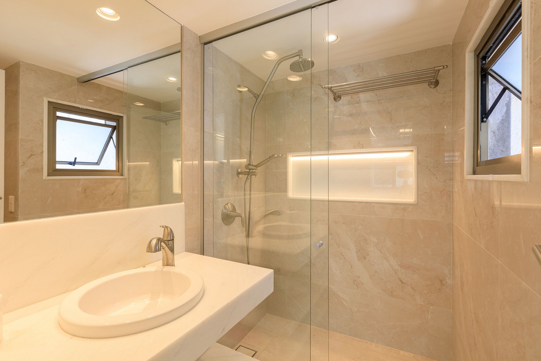 La lujosa Master Suite cuenta con un vestíbulo con espejos de cuerpo entero, un closet gigante y un gran balcón exclusivo, ofreciendo un espacio acogedor con vegetación y un sofá de dos plazas, un espacio para deportistas con colchoneta y remero. El maravilloso baño de mármol tiene un inodoro, una bañera y dos duchas fijas.