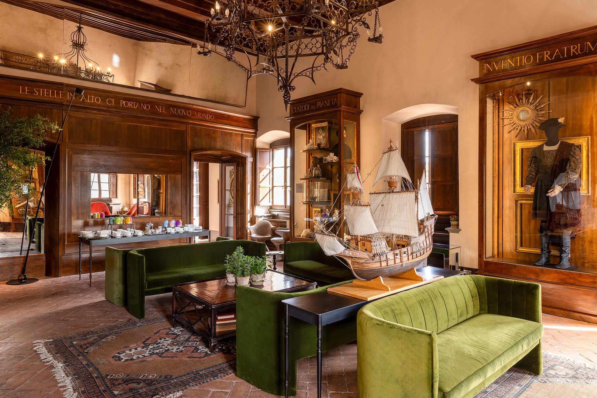 En el corazón de la finca se encuentra una villa renacentista del siglo XIV, construida originalmente por una noble familia florentina. Rodeada de hileras de cipreses, viñedos y olivos, la villa encarna la elegancia arquitectónica de la Toscana en un entorno natural sereno. Los jardines, diseñados por el estudio liderado por el reconocido arquitecto Patrice Taravella (creador de los jardines de Babylonstoren y The Newt), combinan árboles maduros —como pinos, tilos y palmeras— con un paisajismo mineral enriquecido por cientos de macetas de terracota artesanales de Impruneta.