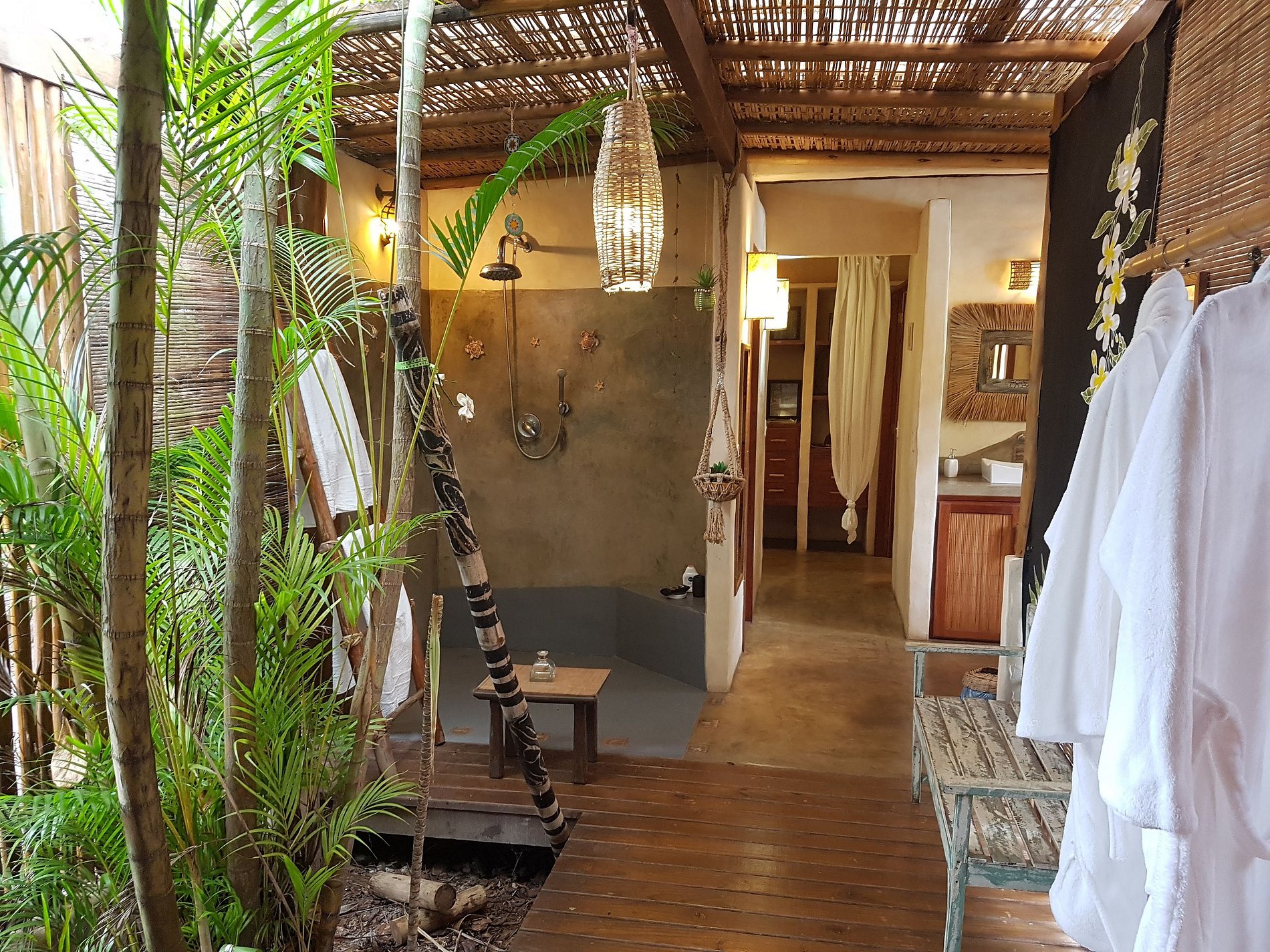 Suite con terraza privada con vista al jardín trasero. Entrada independiente y posibilidad de comunicación con la unidad principal a través de la oficina. Consta de un dormitorio con 1 cama doble y mosquitera, aire acondicionado y ventilador de techo, 1 cama individual, baño independiente con ducha, 1 armario, WC independiente con puerta, pequeña oficina con minibar y caja fuerte.