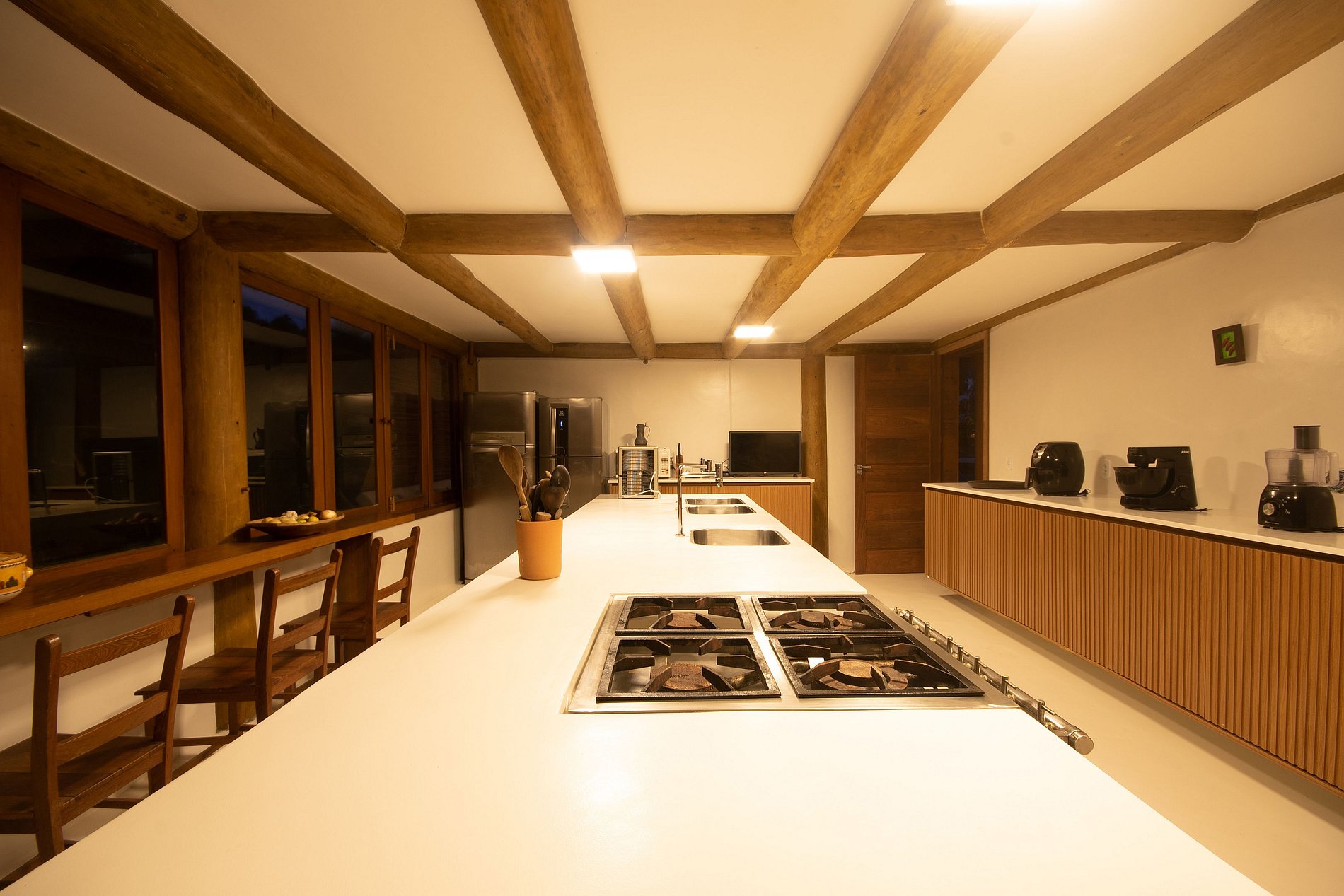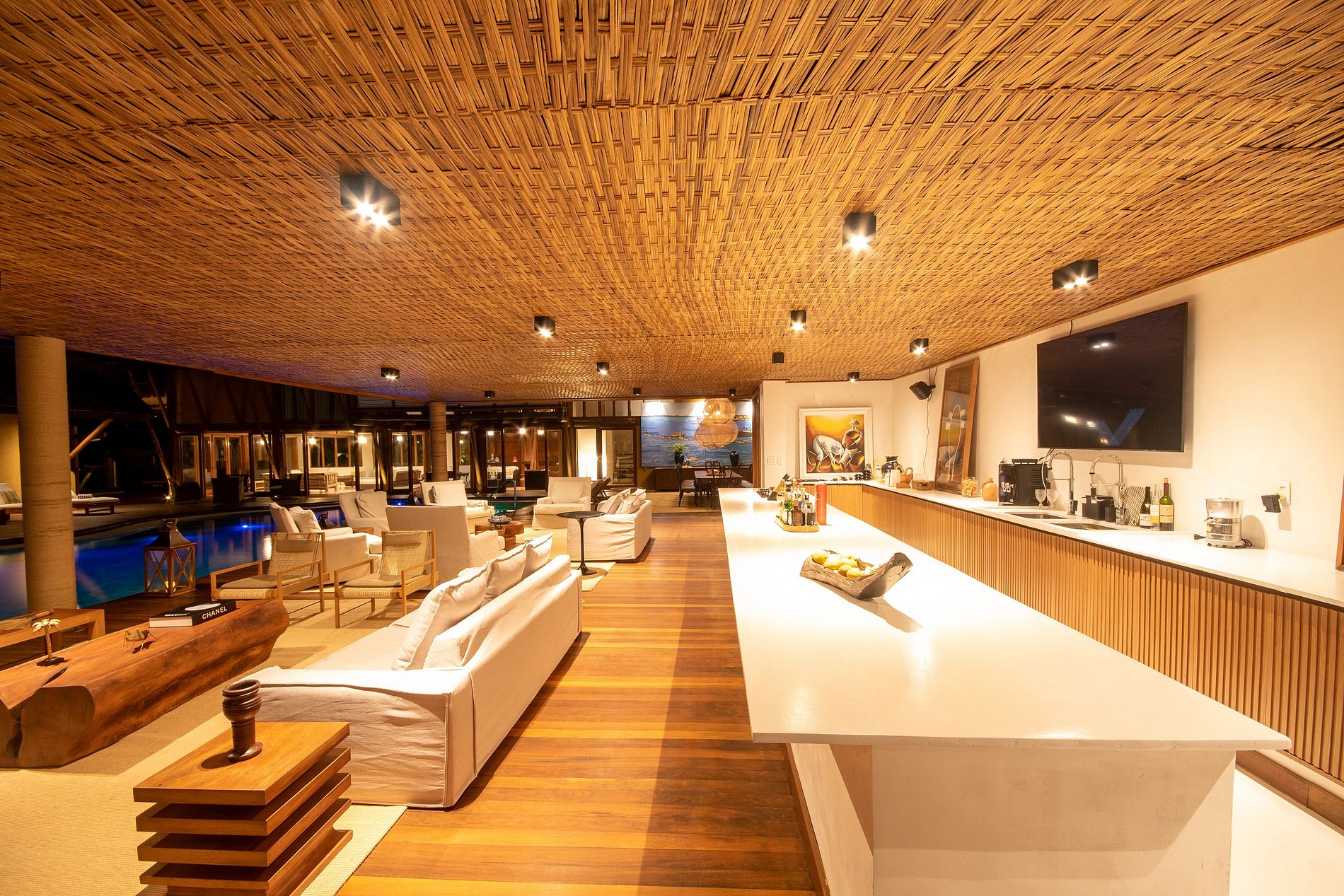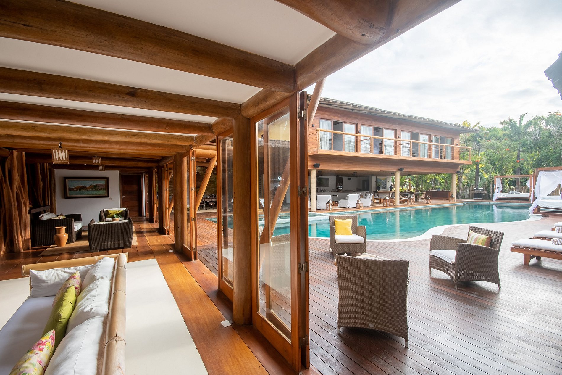 Una de las mejores casas de la región de Trancoso. Arquitectura que recuerda a los ambientes lounge tailandeses. Ambientes bien decorados, decorados con obras de arte y muebles muy cómodos. Habitaciones que parecen un hotel. La piscina está en el centro y casi todas las habitaciones tienen un balcón con vistas directas a la piscina.