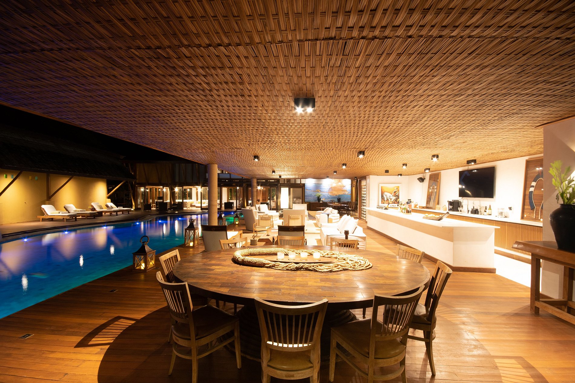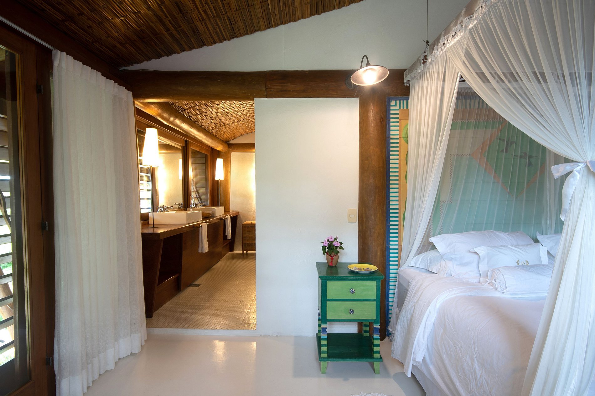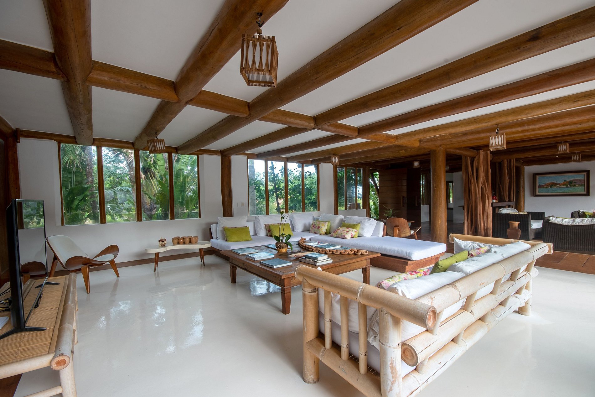 Una de las mejores casas de la región de Trancoso. Arquitectura que recuerda a los ambientes lounge tailandeses. Ambientes bien decorados, decorados con obras de arte y muebles muy cómodos. Habitaciones que parecen un hotel. La piscina está en el centro y casi todas las habitaciones tienen un balcón con vistas directas a la piscina.