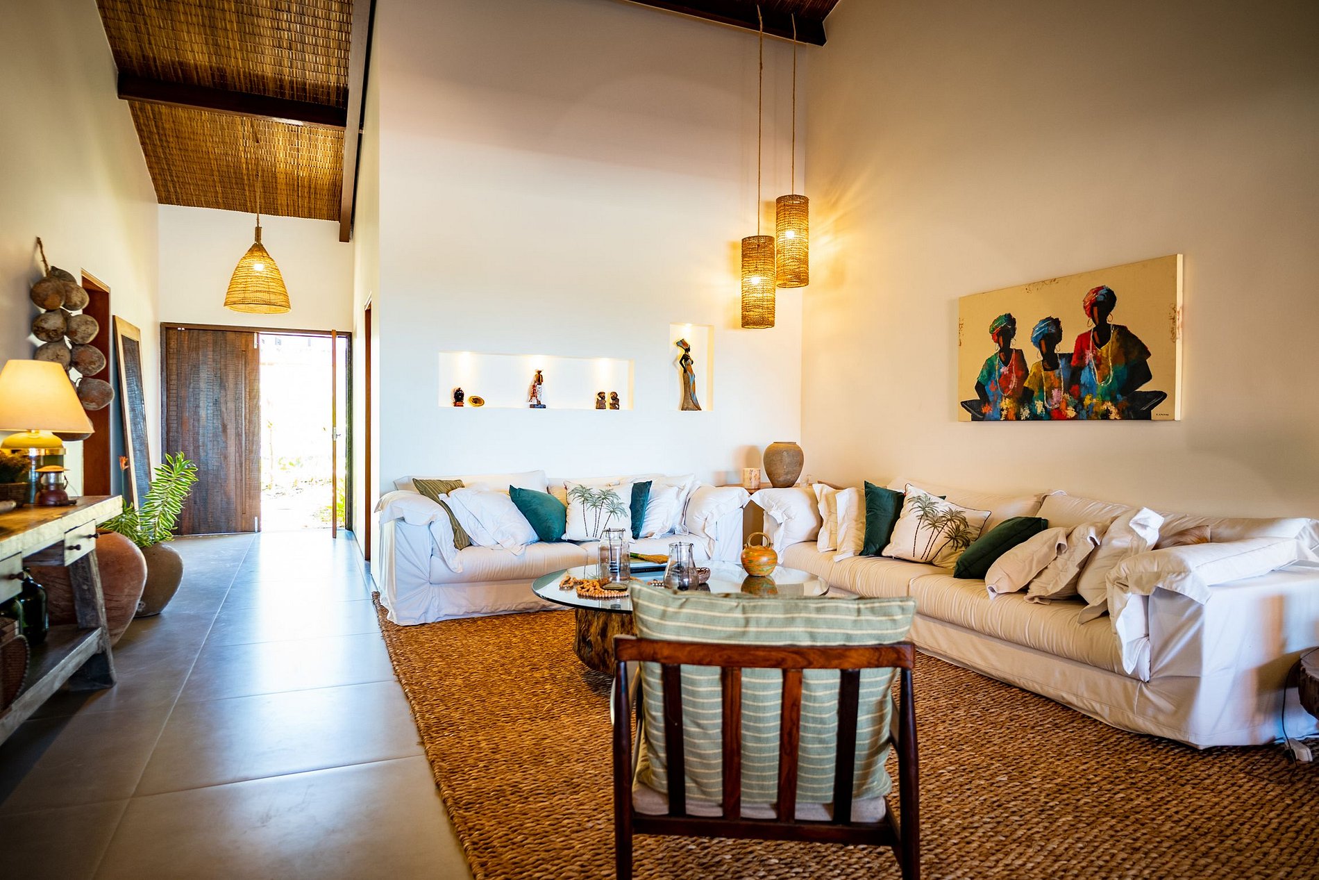 Los interiores son hermosos, con techos altos y una decoración impecable.