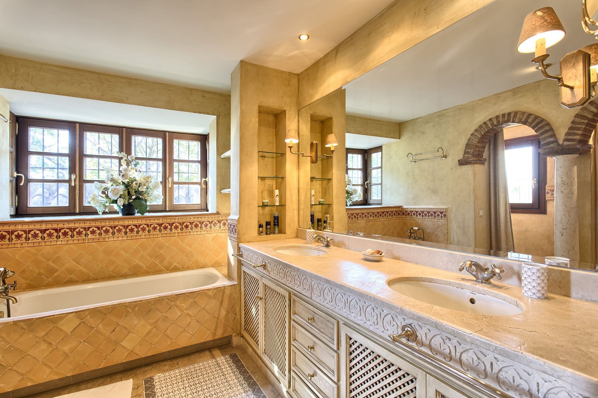 Esta hermosa clásica villa privada con gran personalidad y encanto se encuentra en una ubicación fantástica, en lo alto de la colina en Nueva Andalucía; justo debajo de la cima de La Manga, frente a una hermosa vista sobre el campo de golf Las Brisas, la montaña de La Concha y el mar.