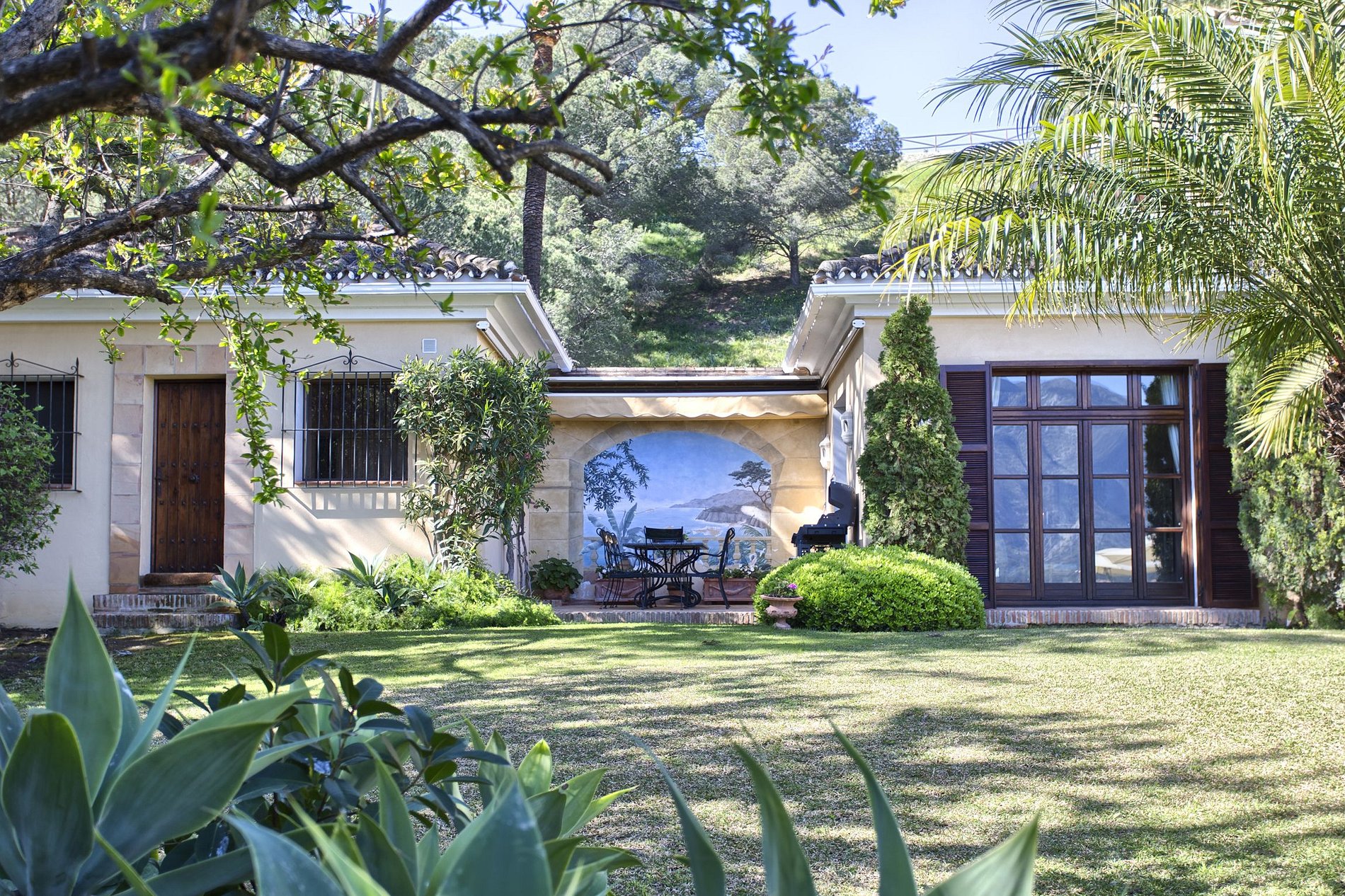 Olivos, palmeras y árboles frutales y un entorno muy verde rodean la parcela de 1.891 m2. La zona es muy tranquila y silenciosa, sin ruido de tráfico, relajante y energizante.
