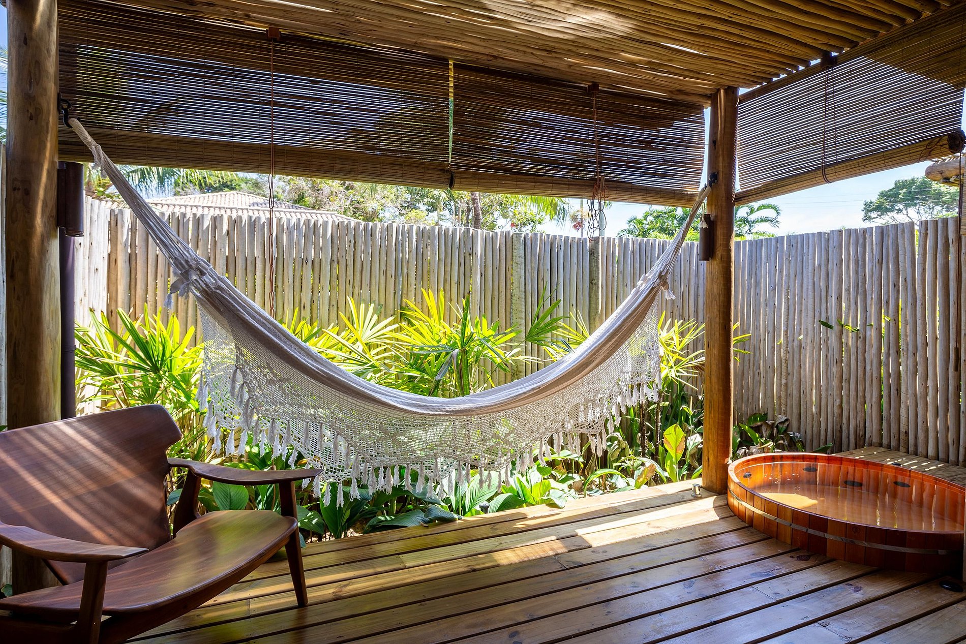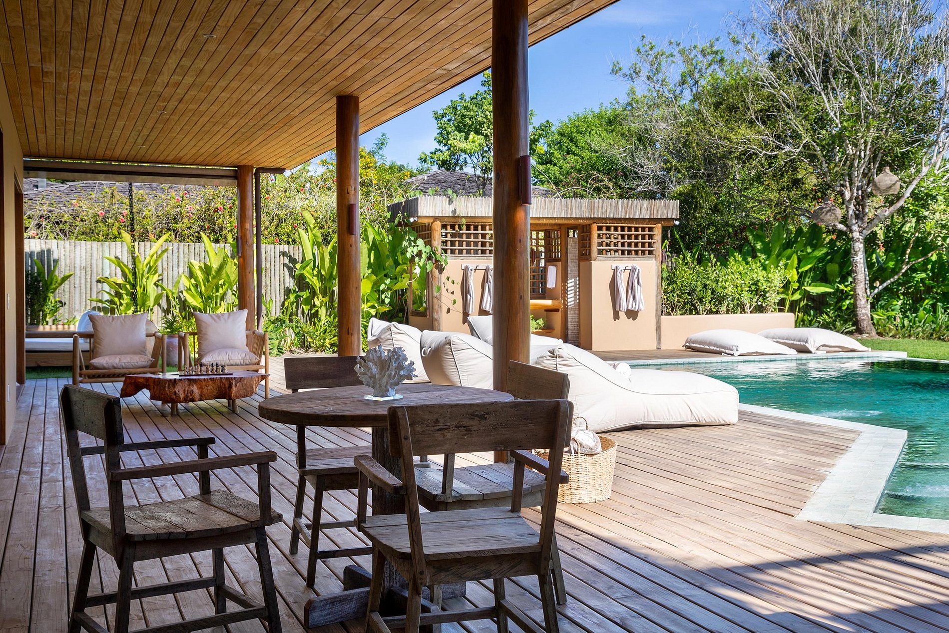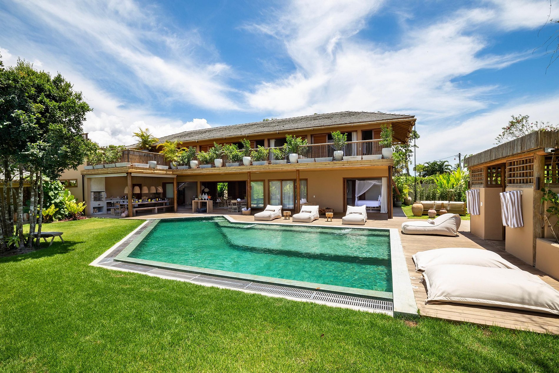 Ubicada en la hermosa comunidad de Altos de Trancoso, la casa ofrece siete suites, bien distribuidas entre el jardín, la casa principal y los edificios individuales. Tiene capacidad para 14 personas.