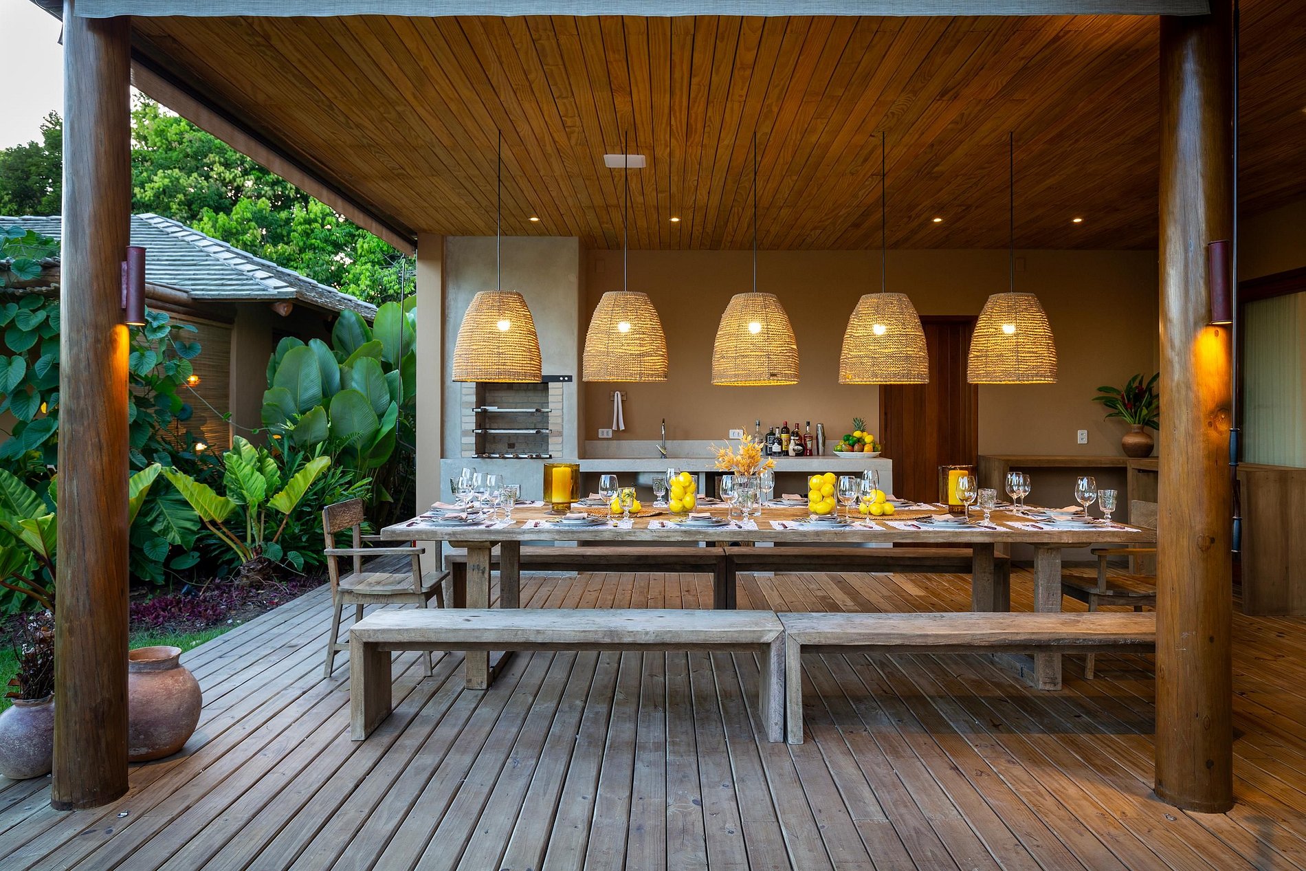 Ubicada en la hermosa comunidad de Altos de Trancoso, la casa ofrece siete suites, bien distribuidas entre el jardín, la casa principal y los edificios individuales. Tiene capacidad para 14 personas.
