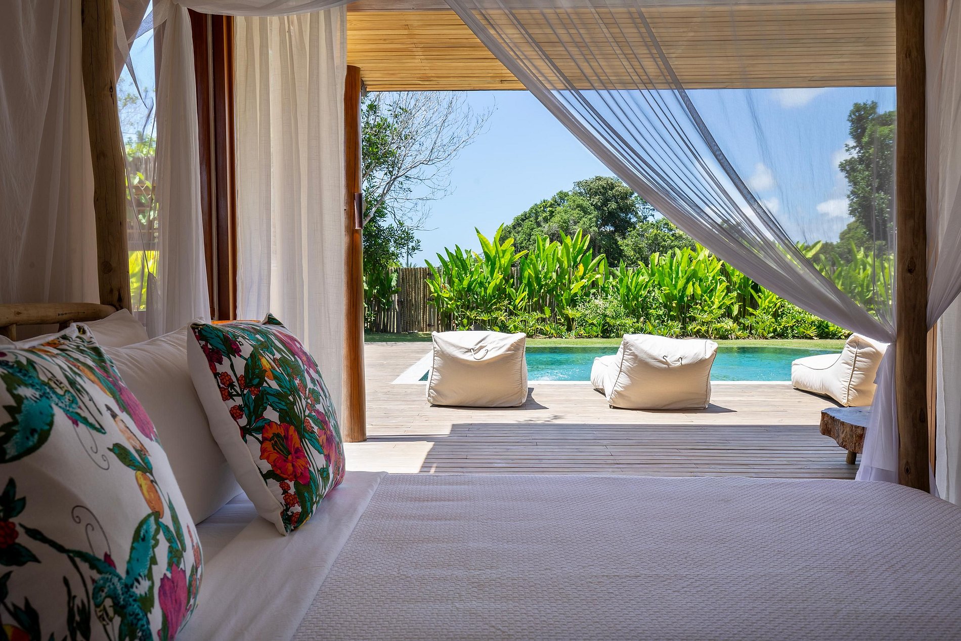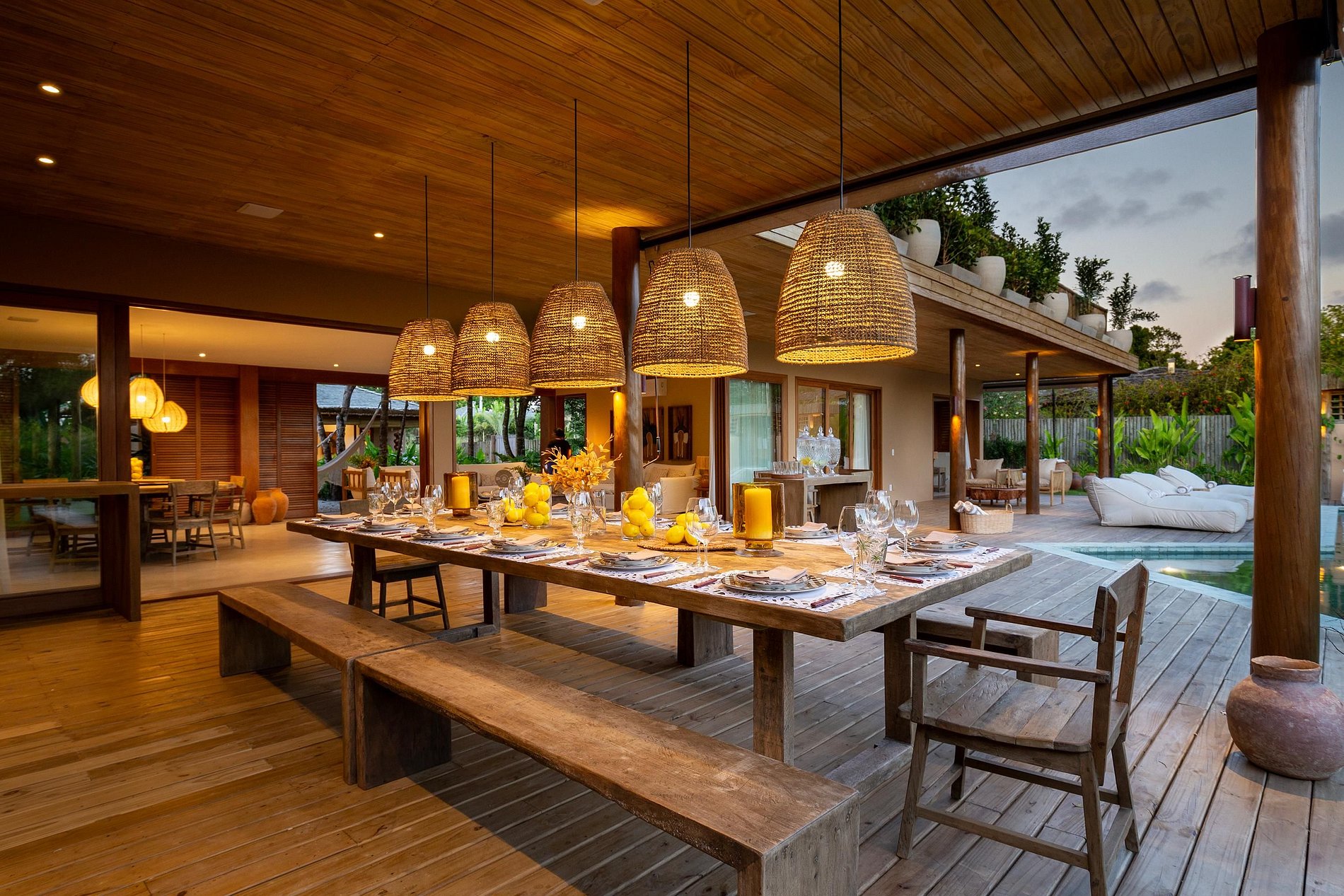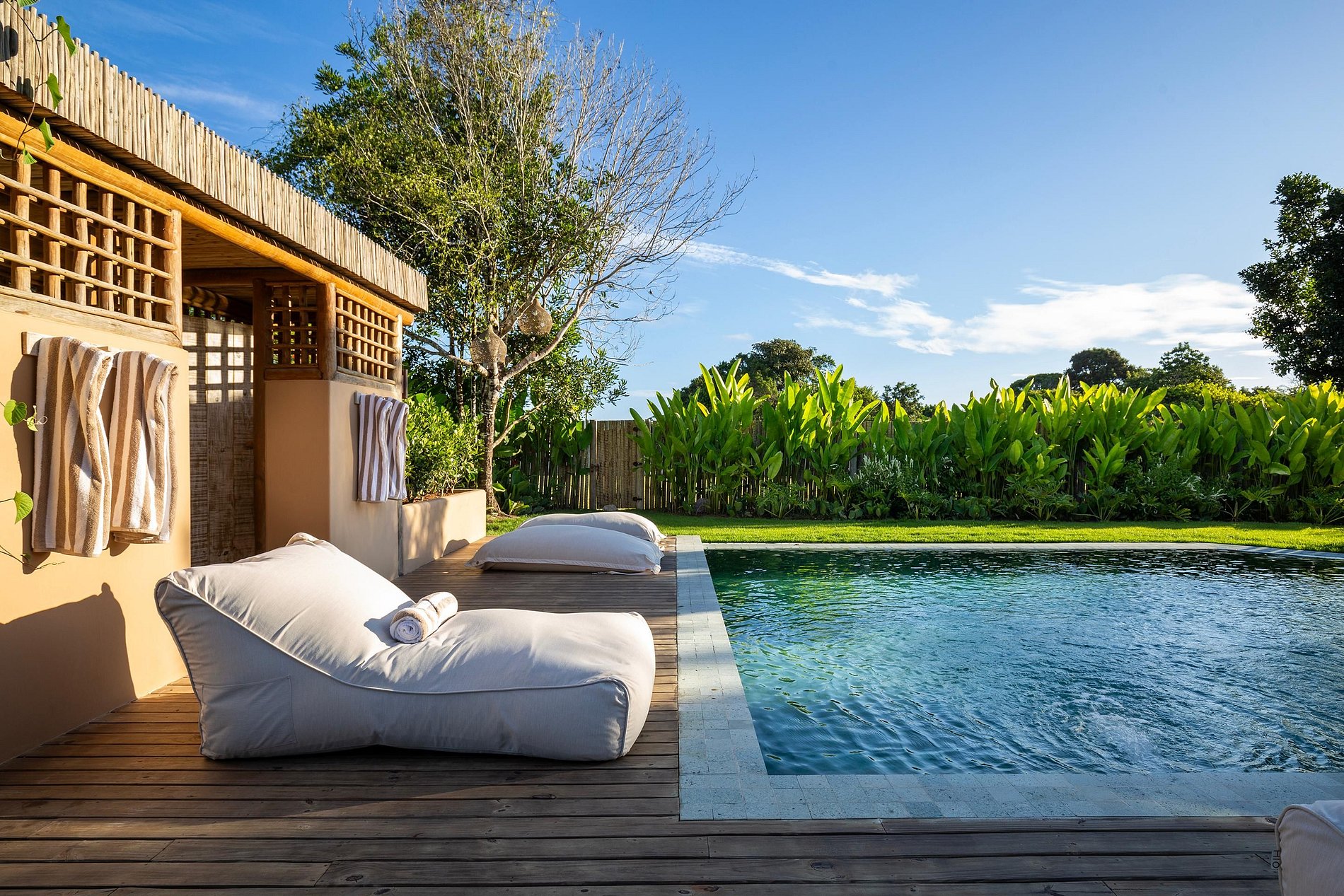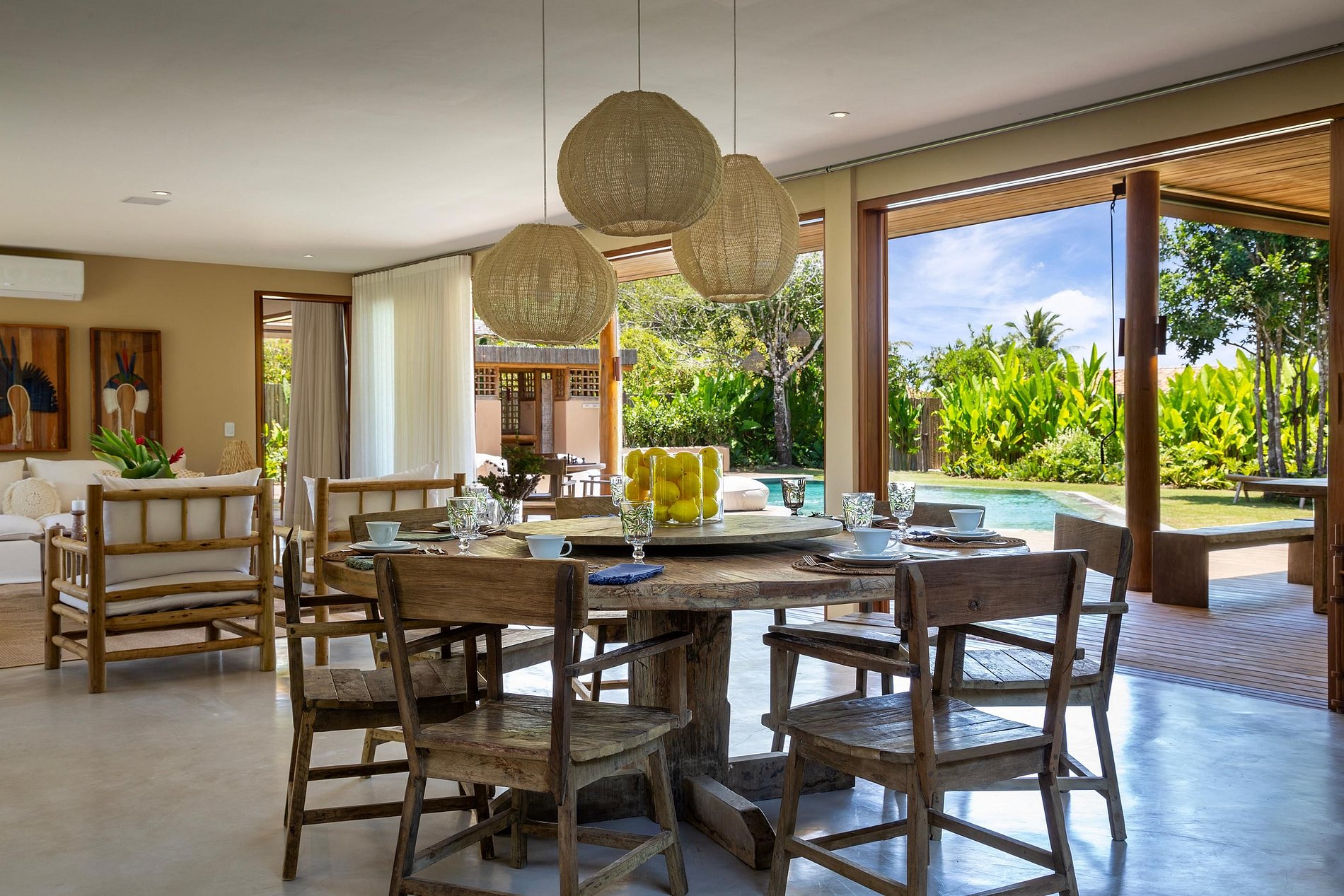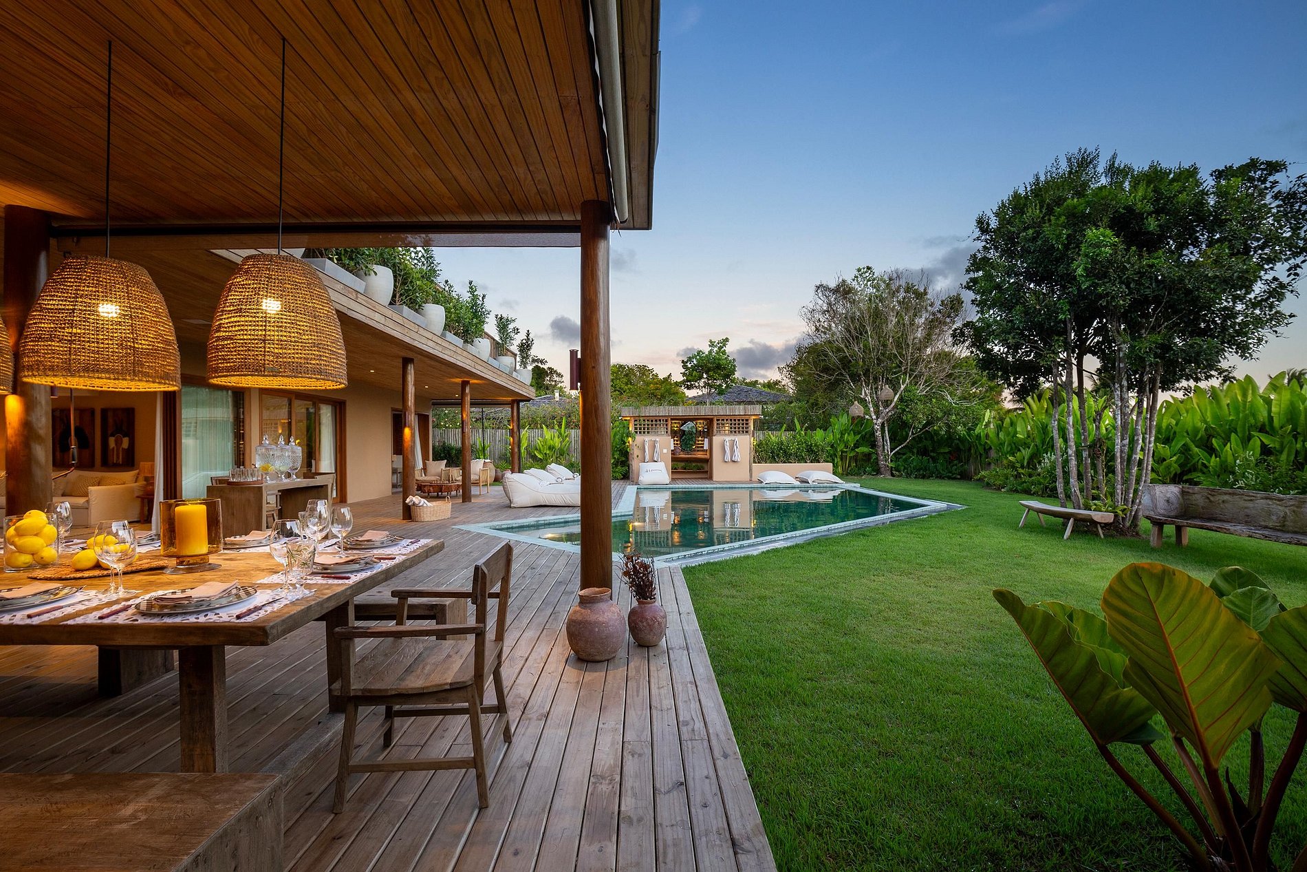 Ubicada en la hermosa comunidad de Altos de Trancoso, la casa ofrece siete suites, bien distribuidas entre el jardín, la casa principal y los edificios individuales. Tiene capacidad para 14 personas.