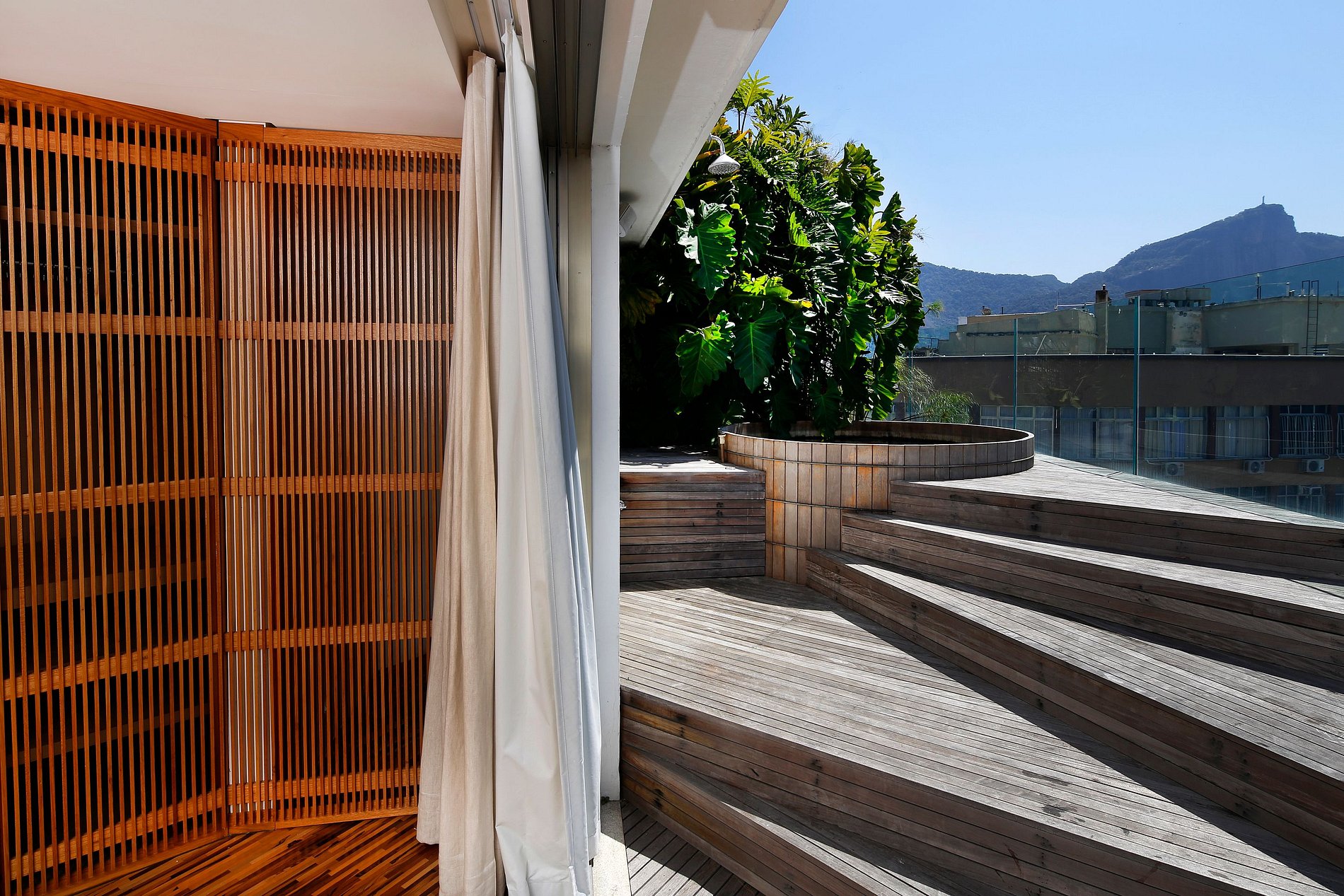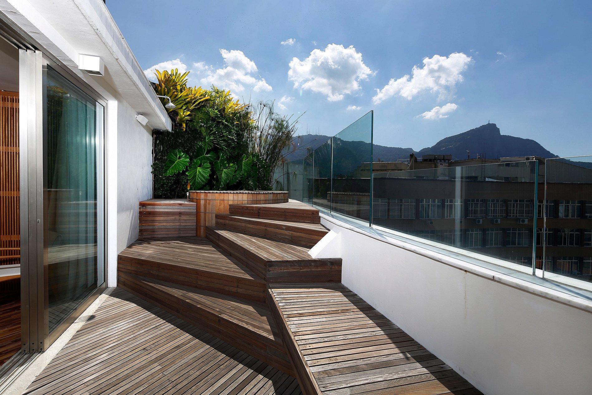 Pero es en la terraza que probablemente pasará la mayor parte del tiempo mientras esté alojado aquí, gracias a su espacio generoso que cubre toda la extensión de la propiedad. Disfrute de relajarse en las tumbonas o hacer una deliciosa barbacoa en la barbacoa móvil, en una zona de hasta 10 invitados. La bañera de hidromasaje, situada en cubierta personalizada, es el toque final que hace de ella una opción perfecta para cualquier persona que venga a alojarse en Río.