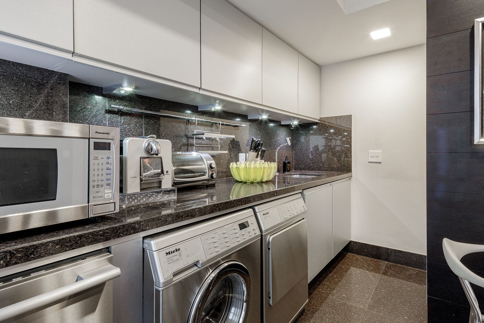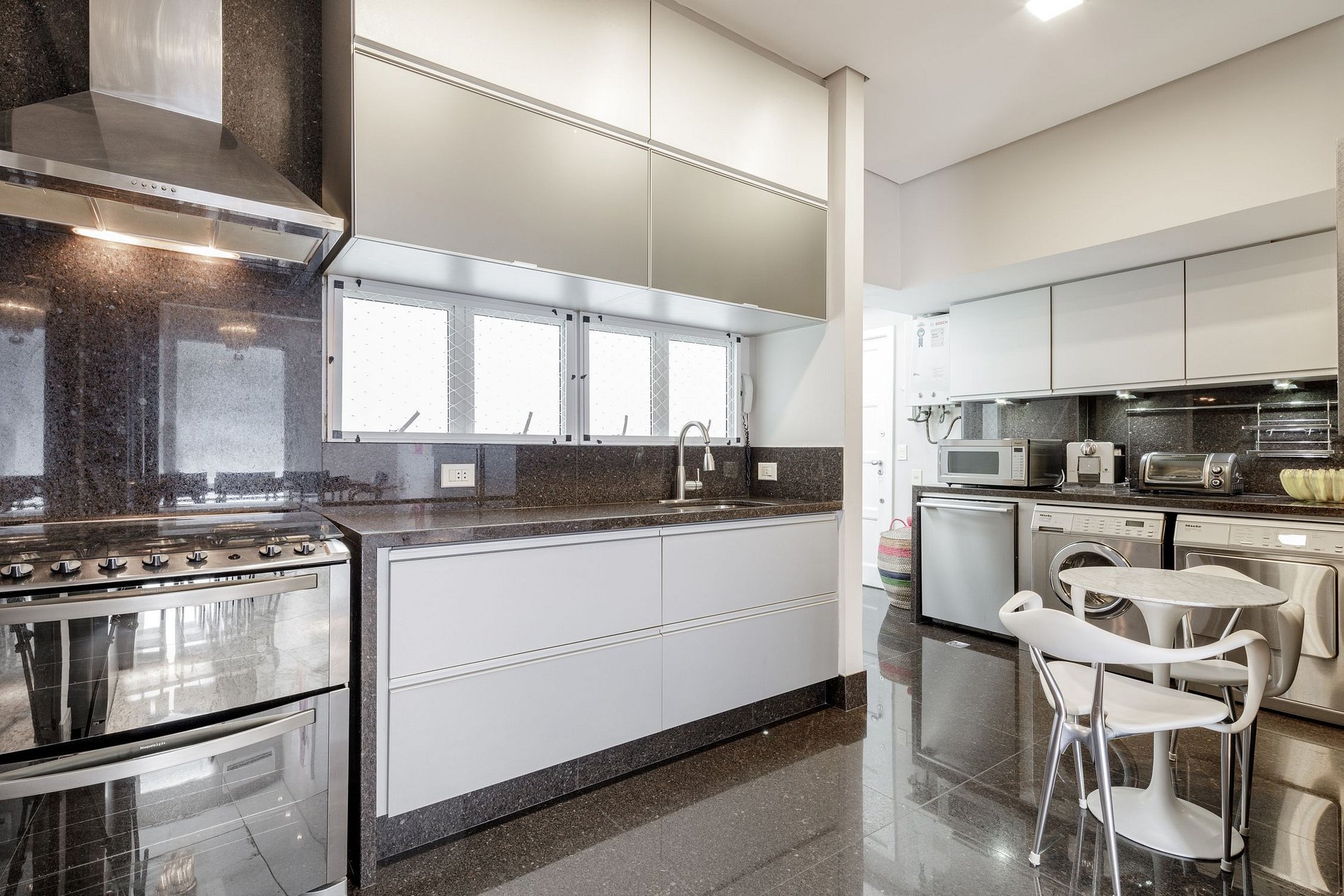 La cocina es espaciosa y bien equipada con modernos electrodomésticos que facilitan la preparación de los alimentos y cuenta con un eficiente sistema de escape en la estufa y lavavajillas para mantener la cubertería y la vajilla siempre limpias.