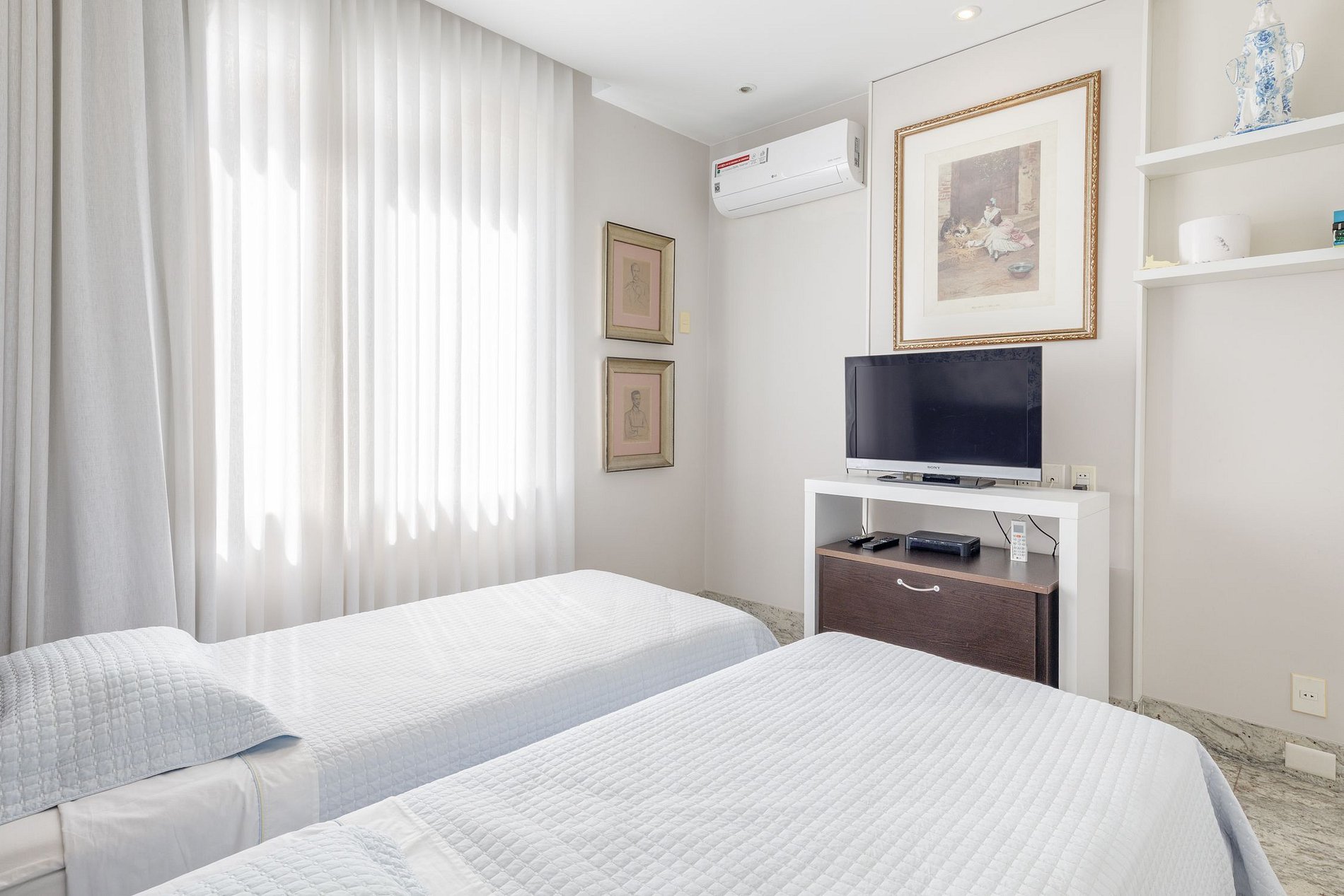 El apartamento cuenta con 1 suite y 2 hermosas habitaciones. Todas ellas equipadas con aire acondicionado y distribuídas así: