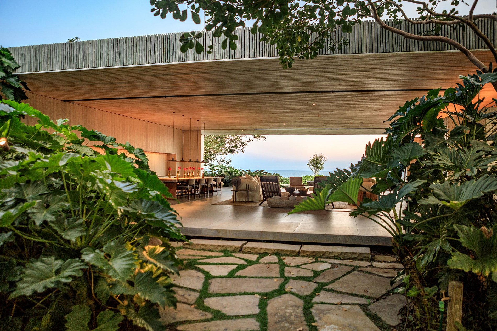 Diseñada por el reconocido arquitecto Marcio Kogan, del Studio MK27, esta residencia es una escultura habitable que combina líneas arquitectónicas audaces con la serenidad natural de Trancoso. Una síntesis perfecta entre sofisticación contemporánea e integración orgánica con el paisaje tropical.