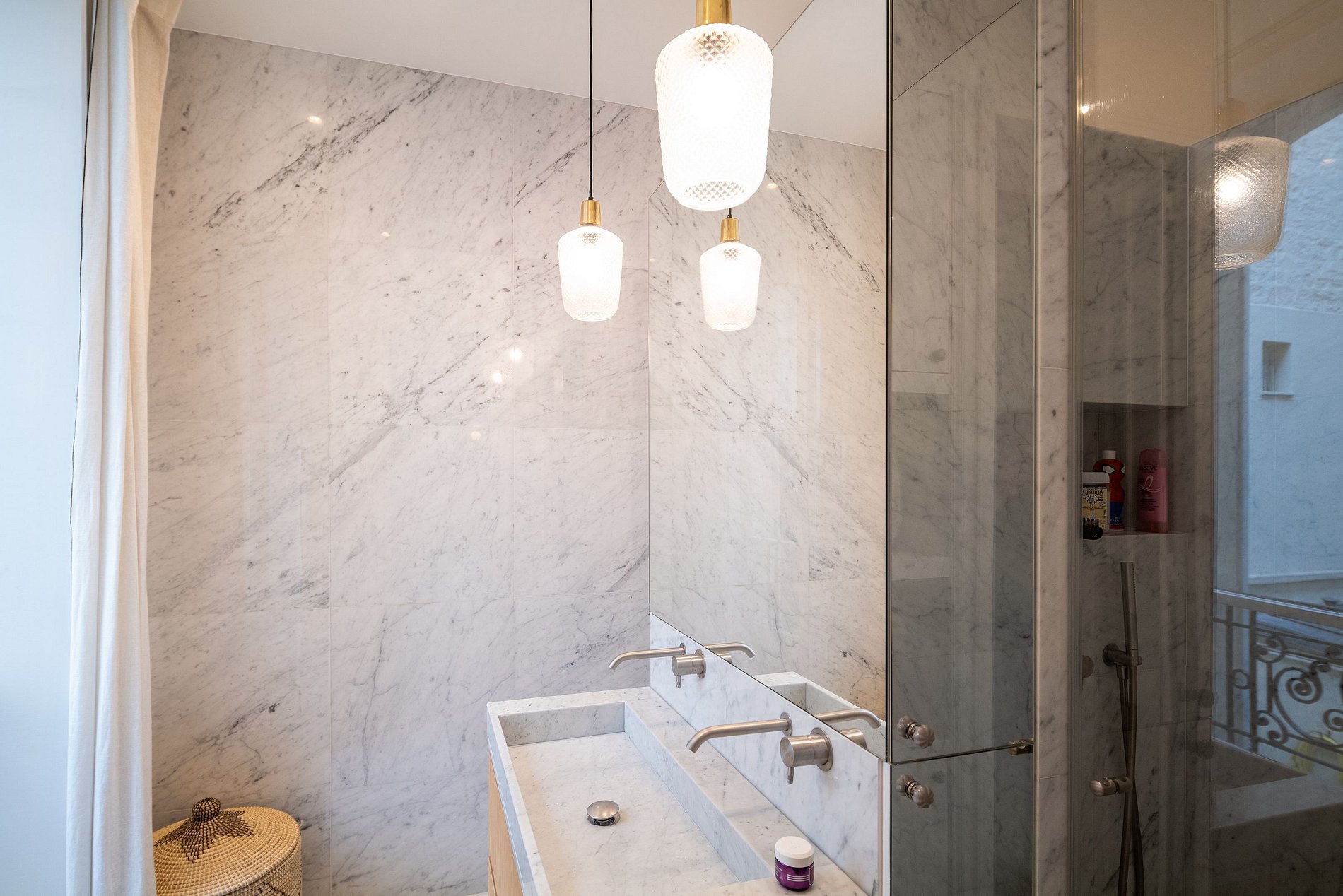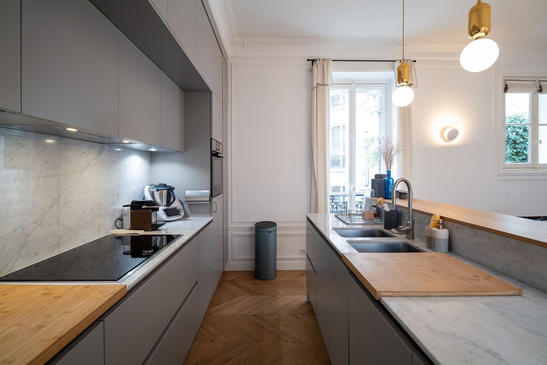 Imaginez le luxe d'un appartement parisien rénové selon les standards les plus exigeants, complété par une terrasse ensoleillée à l'étage et un jardin luxuriant au rez-de-chaussée.