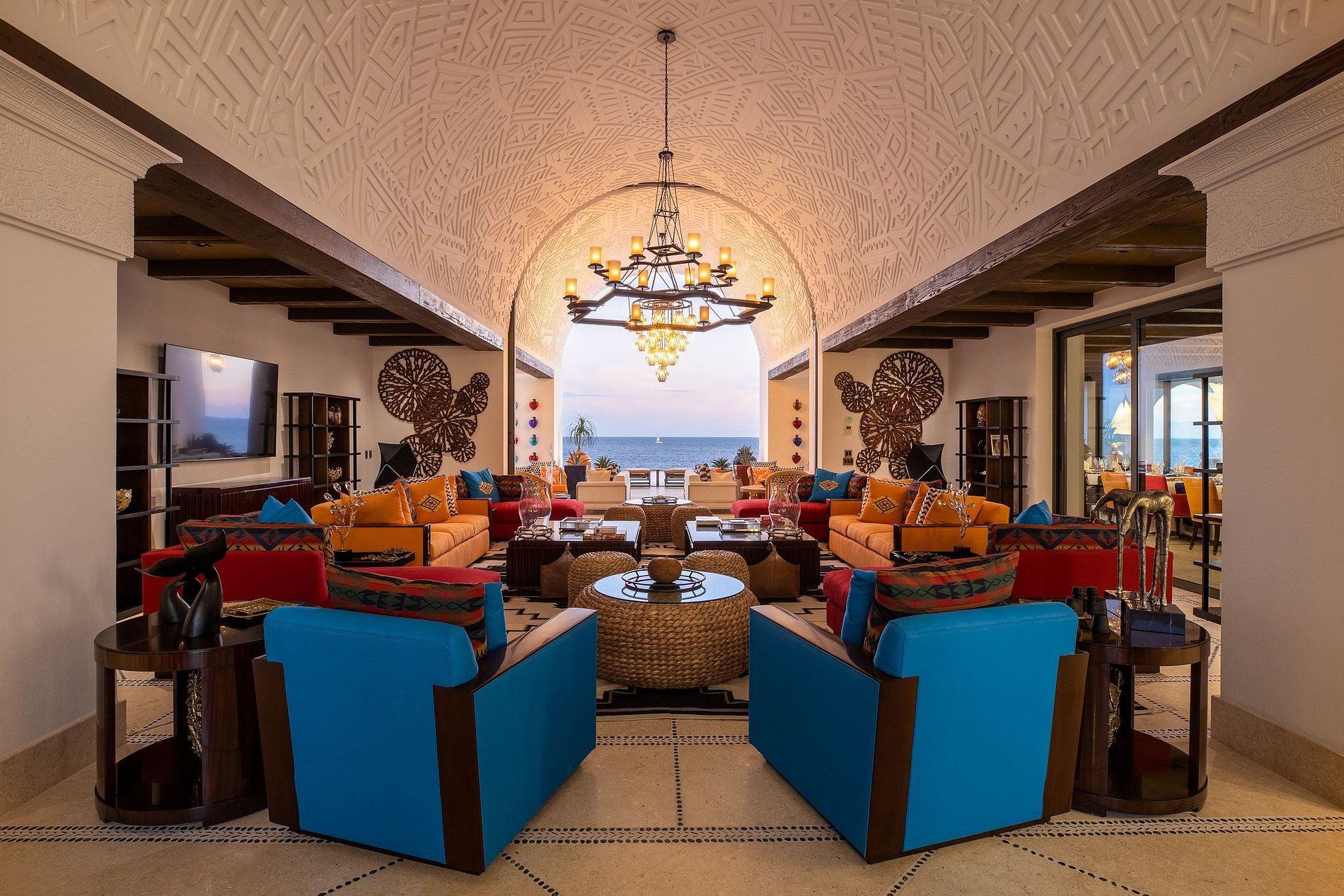 La villa dispose de 10 chambres et 12 salles de bains, conçues dans un style mexicain lumineux et comprend sa propre salle de bain privée et un placard.