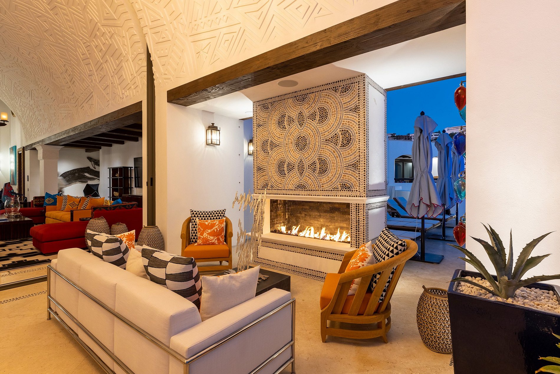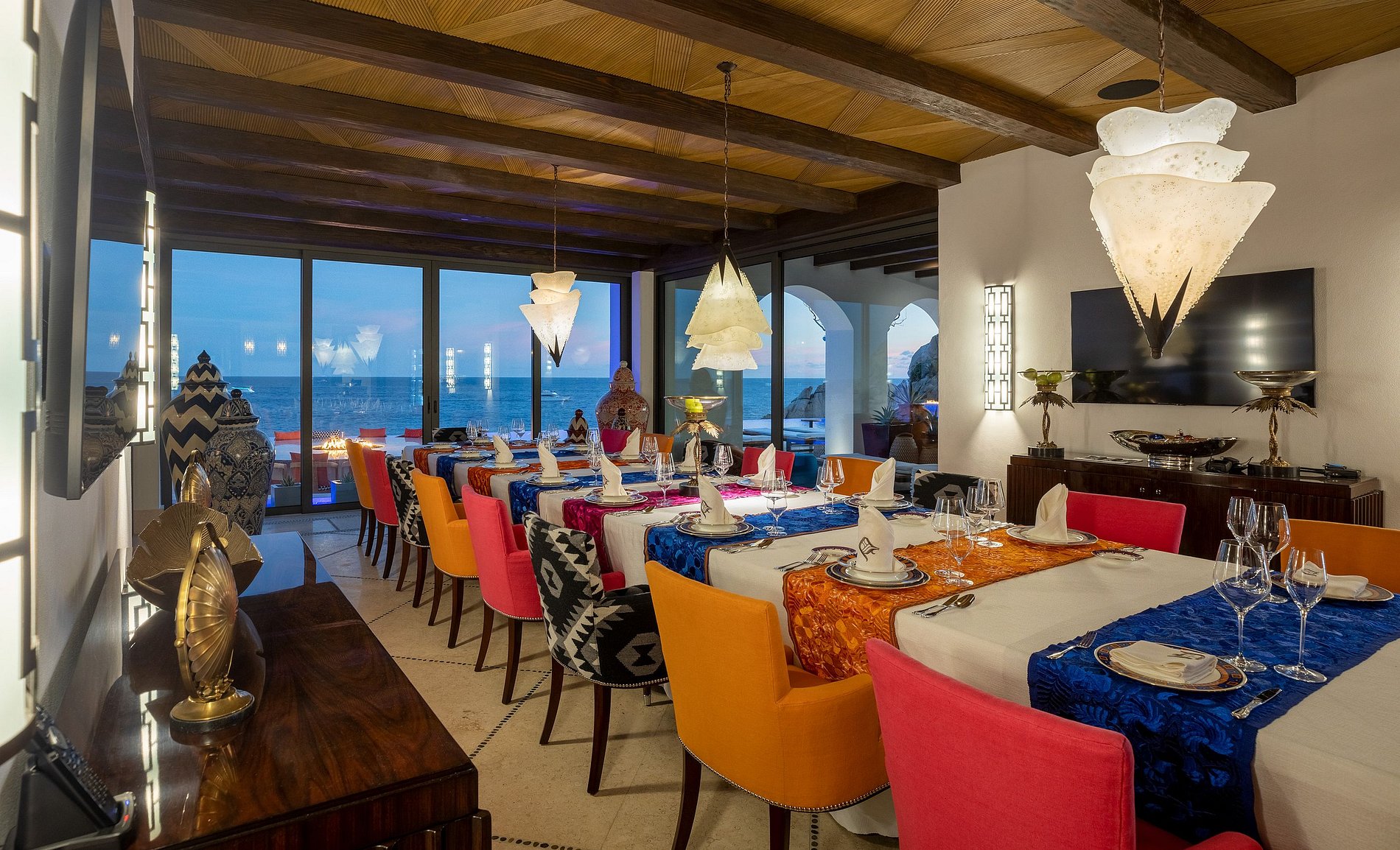 La villa dispose de 10 chambres et 12 salles de bains, conçues dans un style mexicain lumineux et comprend sa propre salle de bain privée et un placard.