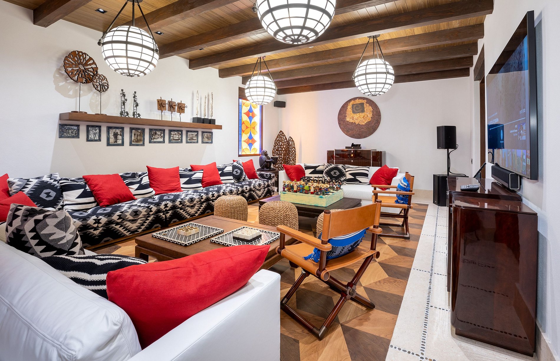 La villa dispose de 10 chambres et 12 salles de bains, conçues dans un style mexicain lumineux et comprend sa propre salle de bain privée et un placard.