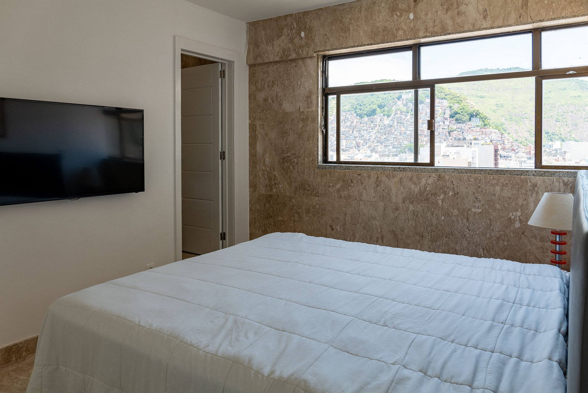 Ce luxueux penthouse avec une large vue sur toute la côte de Copacabana, du fort et aux montagnes lointaines qui entourent la ville merveilleuse, offre une sublime vue sur la nature vibrante de Rio.